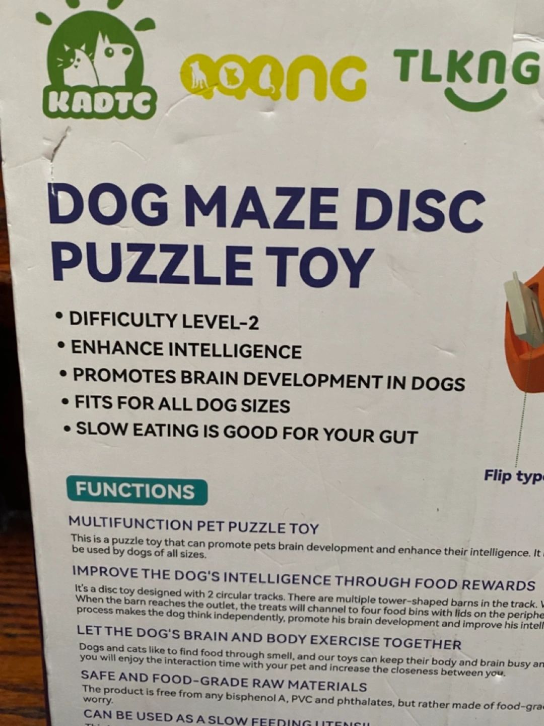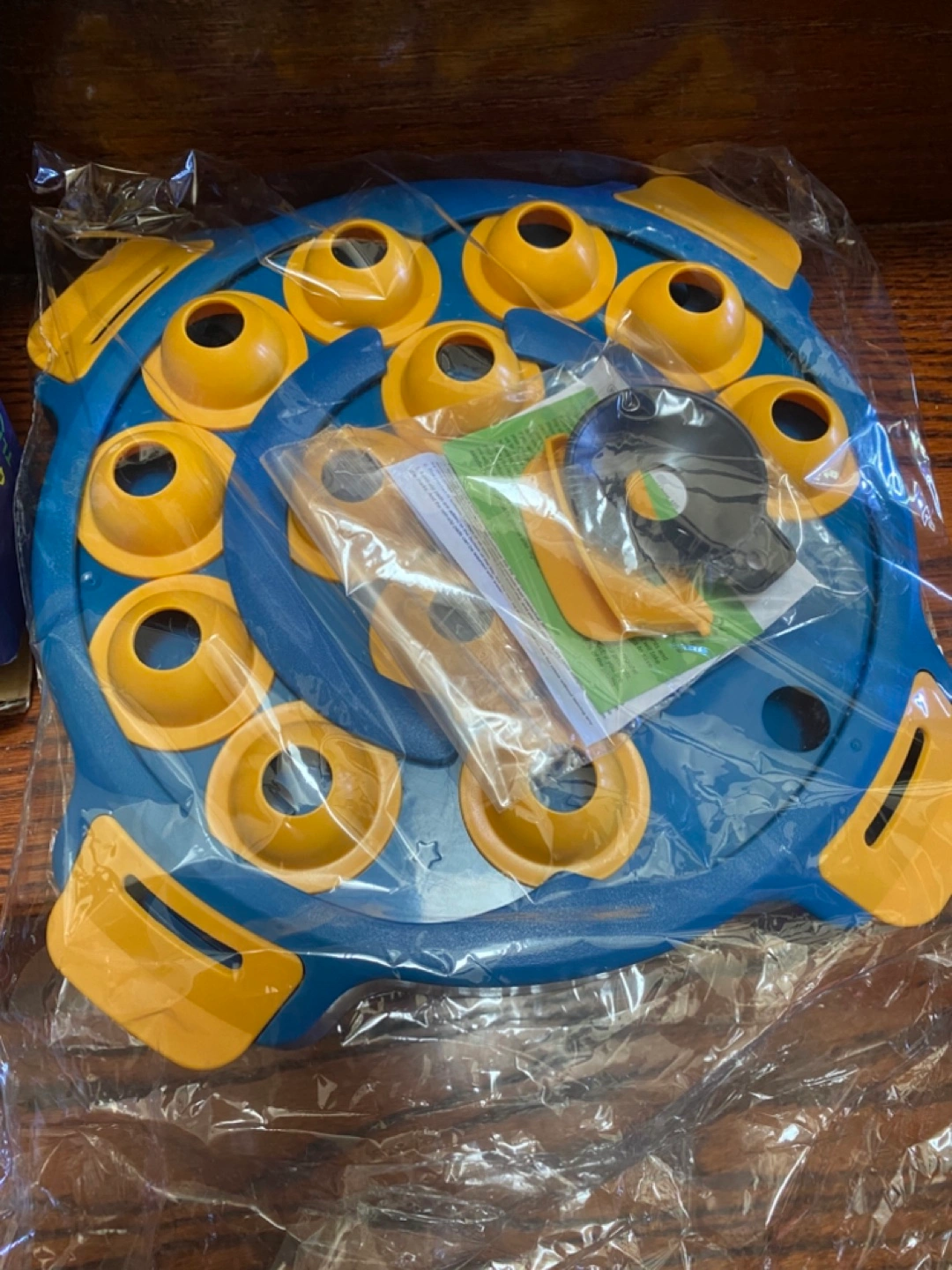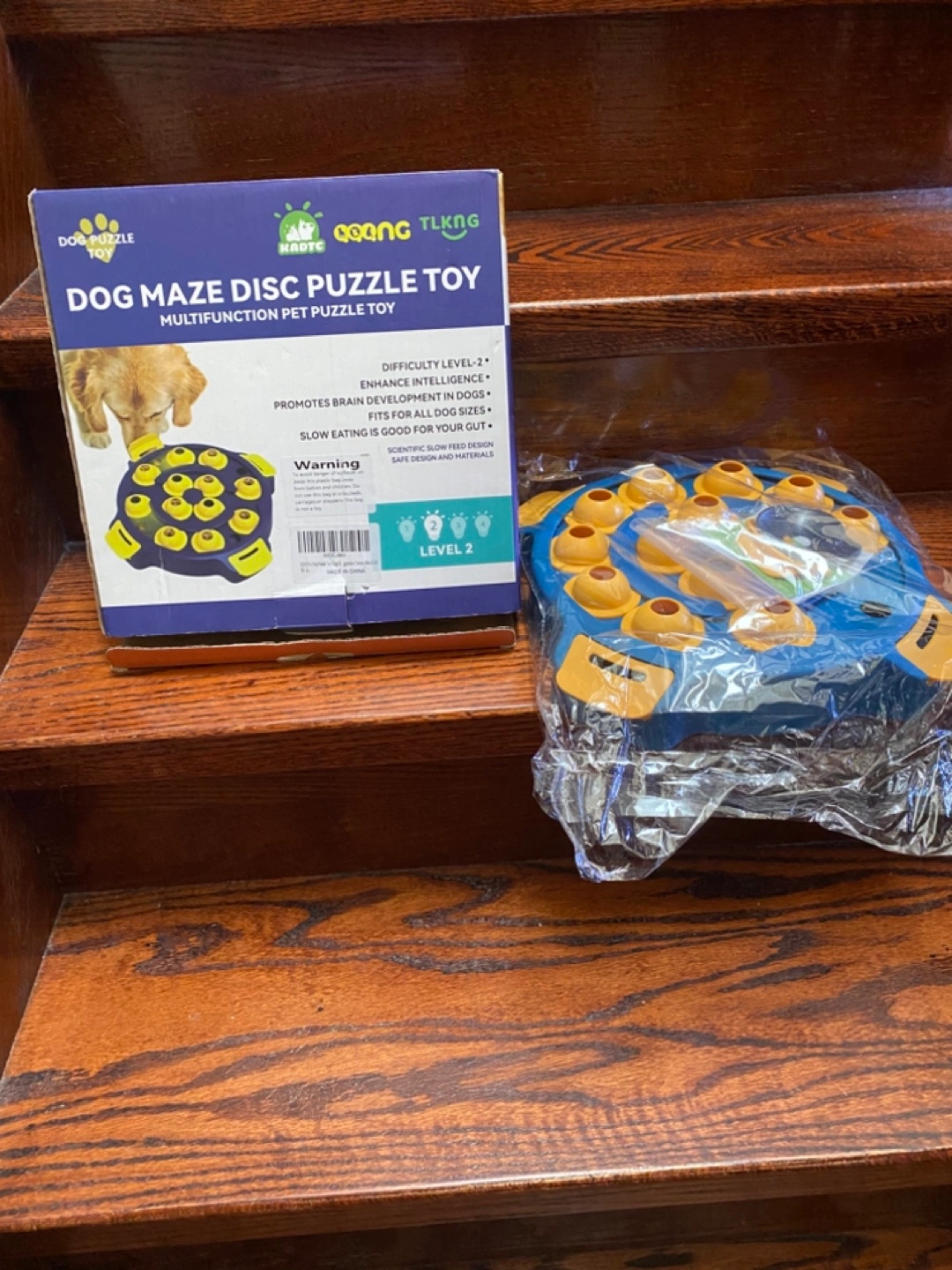 Brand new dog puzzle toy. Difficulty level 2. Enhances intelligence and promotes brain development. Suitable for all dog sizes. Slow feeder, good for gut health. Safe design and materials. Includes moving food-dispensing box. Cash Only