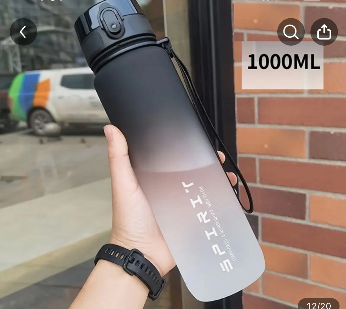 118Large capacity water bottle. Features a black to translucent ombre design. Includes a convenient carry strap. Keeps your drinks cold.