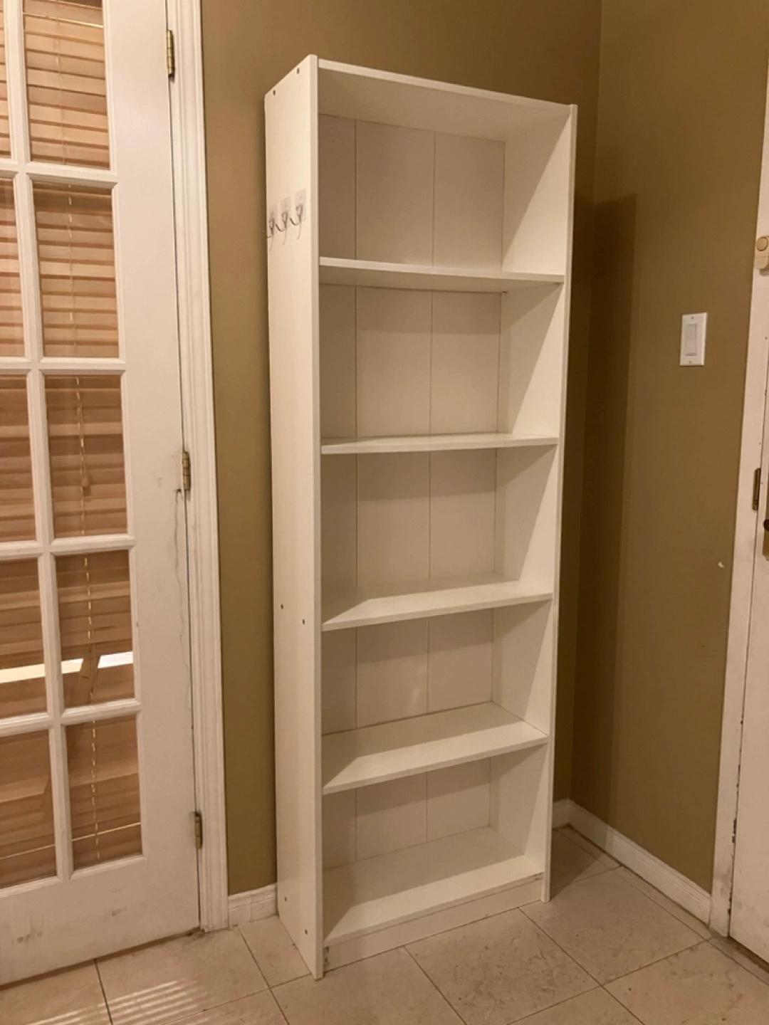 IKEA GERSBY Bookcase with five shelves. Good condition. Added 3 hook at the side as shown. *Cannot disassemble* Dimensions: 60cm wide, 24cm deep, 180cm high.