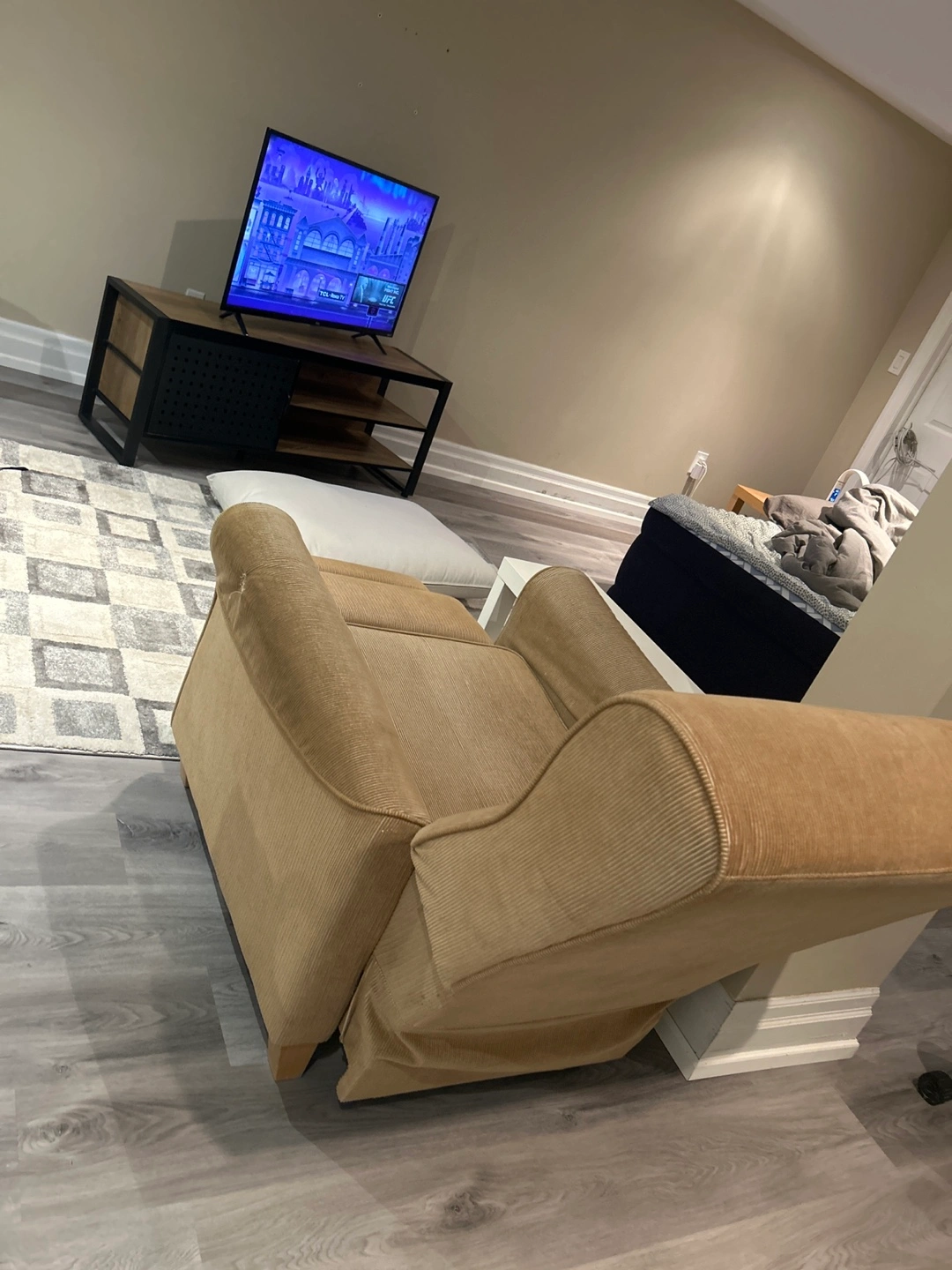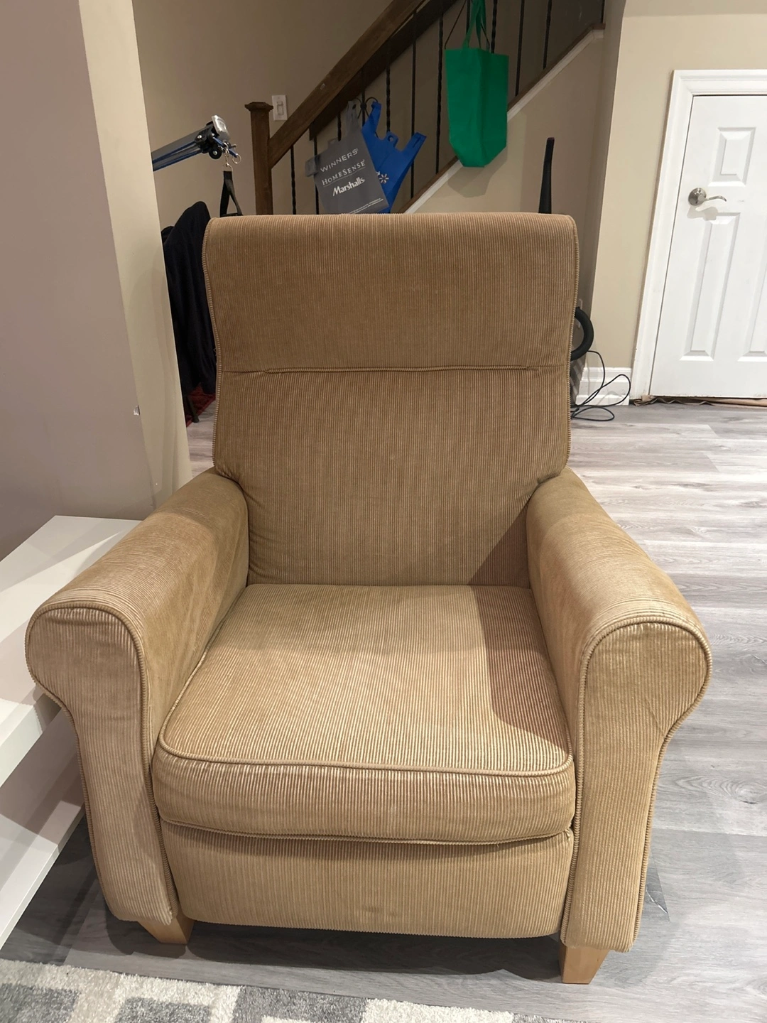 Comfortable recliner chair. Reclining mechanism. Good condition