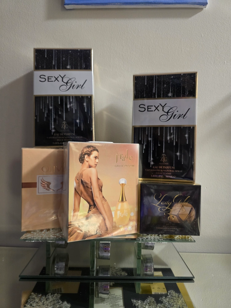 Brand new Collection of four women's perfumes. Includes two Sexy Girl fragrances, one Jade perfume, and one Olivia perfume. Also includes a Lady Gaga-inspired fragrance. Unopened boxes. Great gift idea.Each $35 great for gift valentine ๐ or personal use.For more info contact me anytime