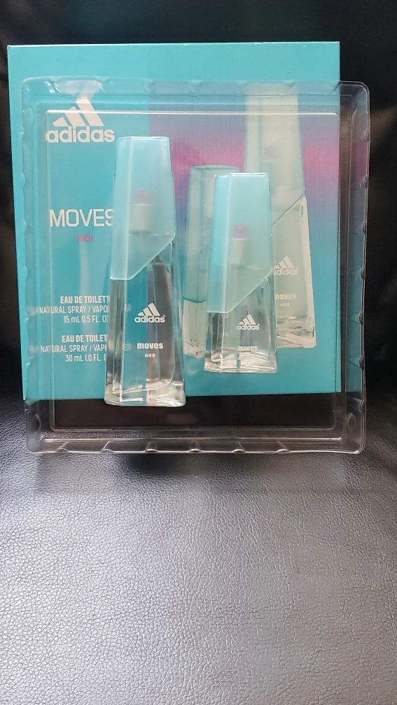 Brand new Women's Adidas Moves Her gift set. Includes two Eau de Toilette spray bottles. New, in box.For sale only $45 never opened for more info contact me anytime π π