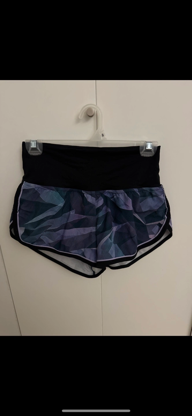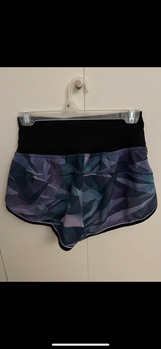 Lululemon running shorts. Size 4. Geometric print. Black waistband. Back zippered pocket. In great condition.