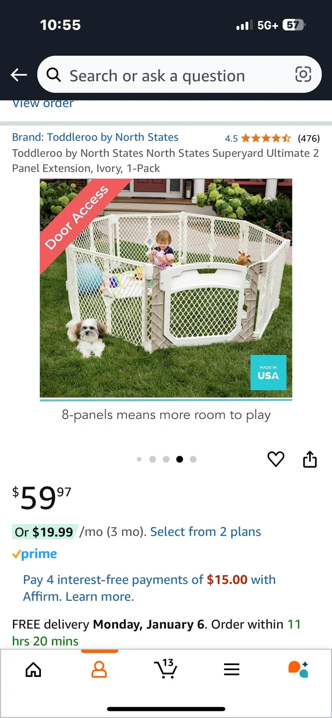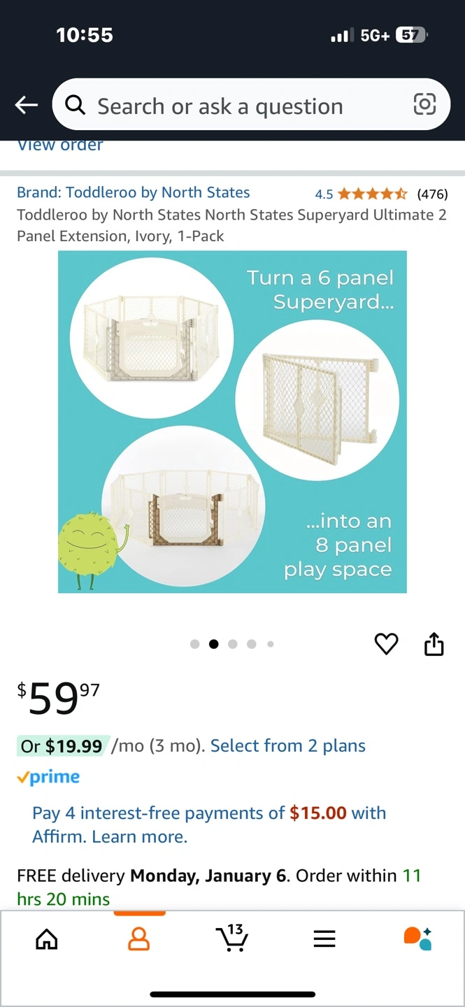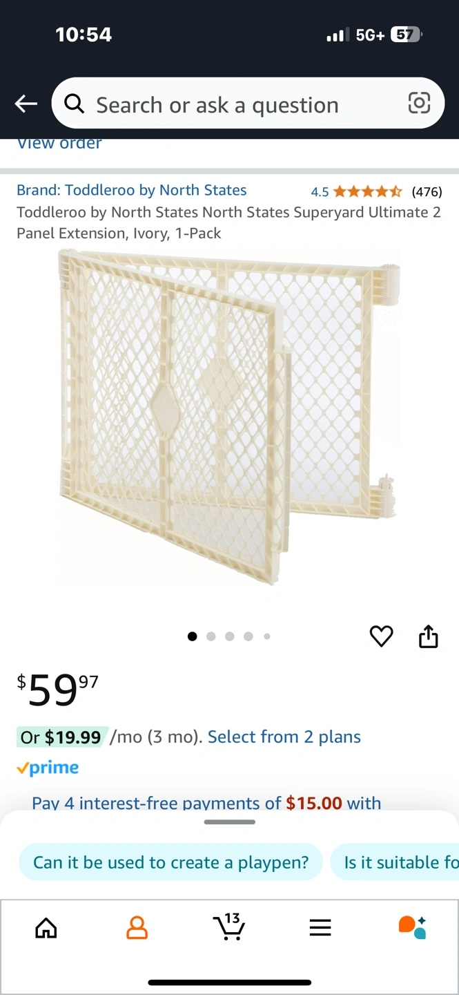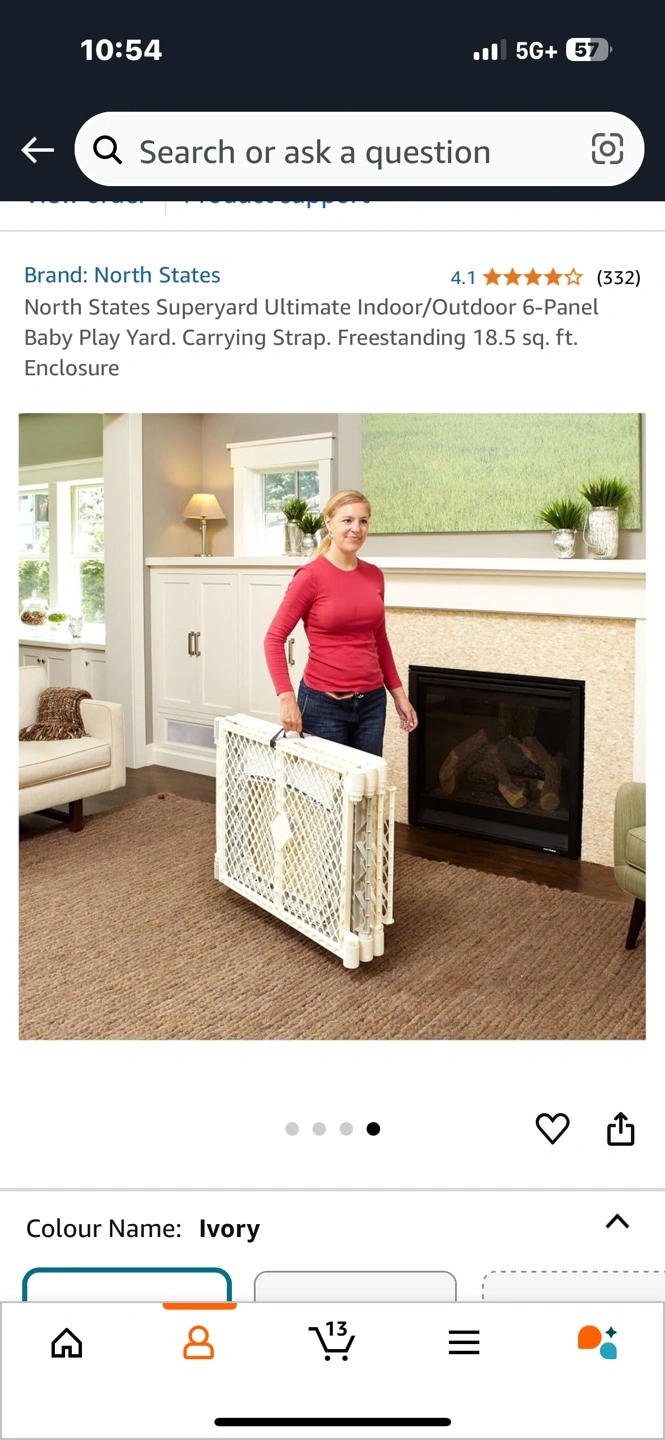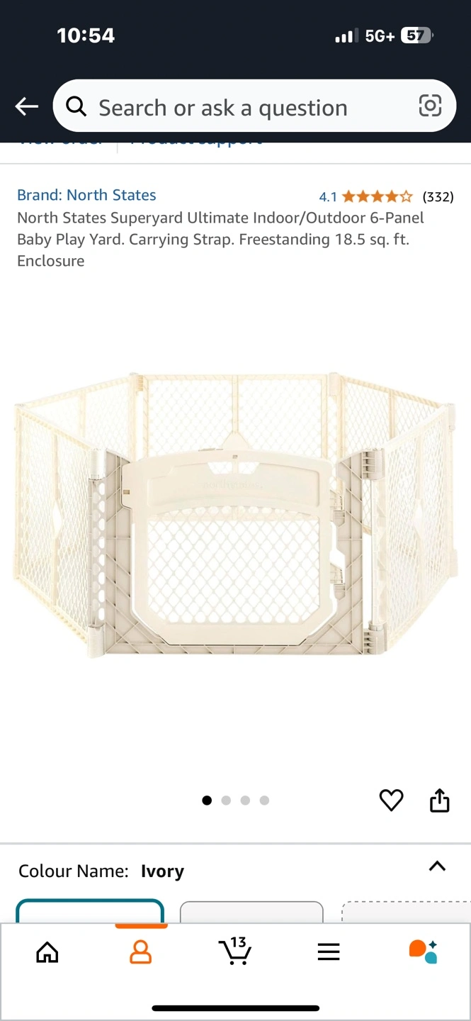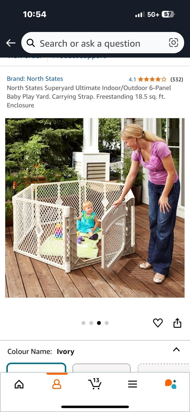 Ivory 6-panel freestanding baby play yard. Includes carrying strap. 18.5 sq. ft. Suitable for indoor or outdoor use. Has extension kit. Both new and playpen in open box. Smoke free. Etobicoke lakeshore and browns line.