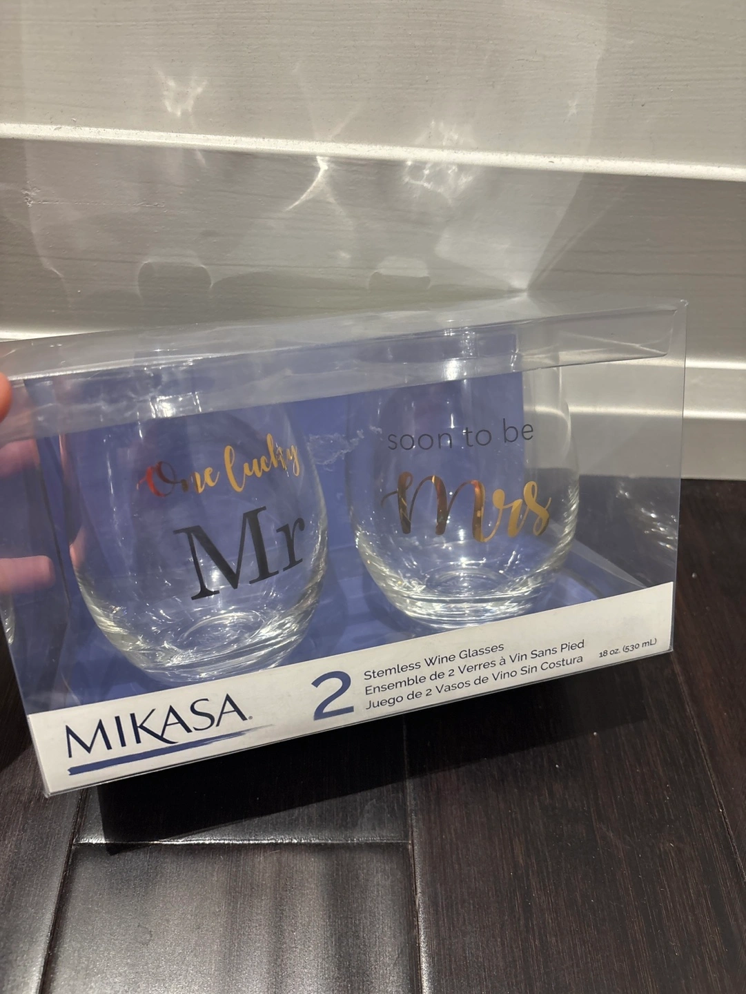 Mikasa Stemless Wine Glasses Set - Mr & Mrs