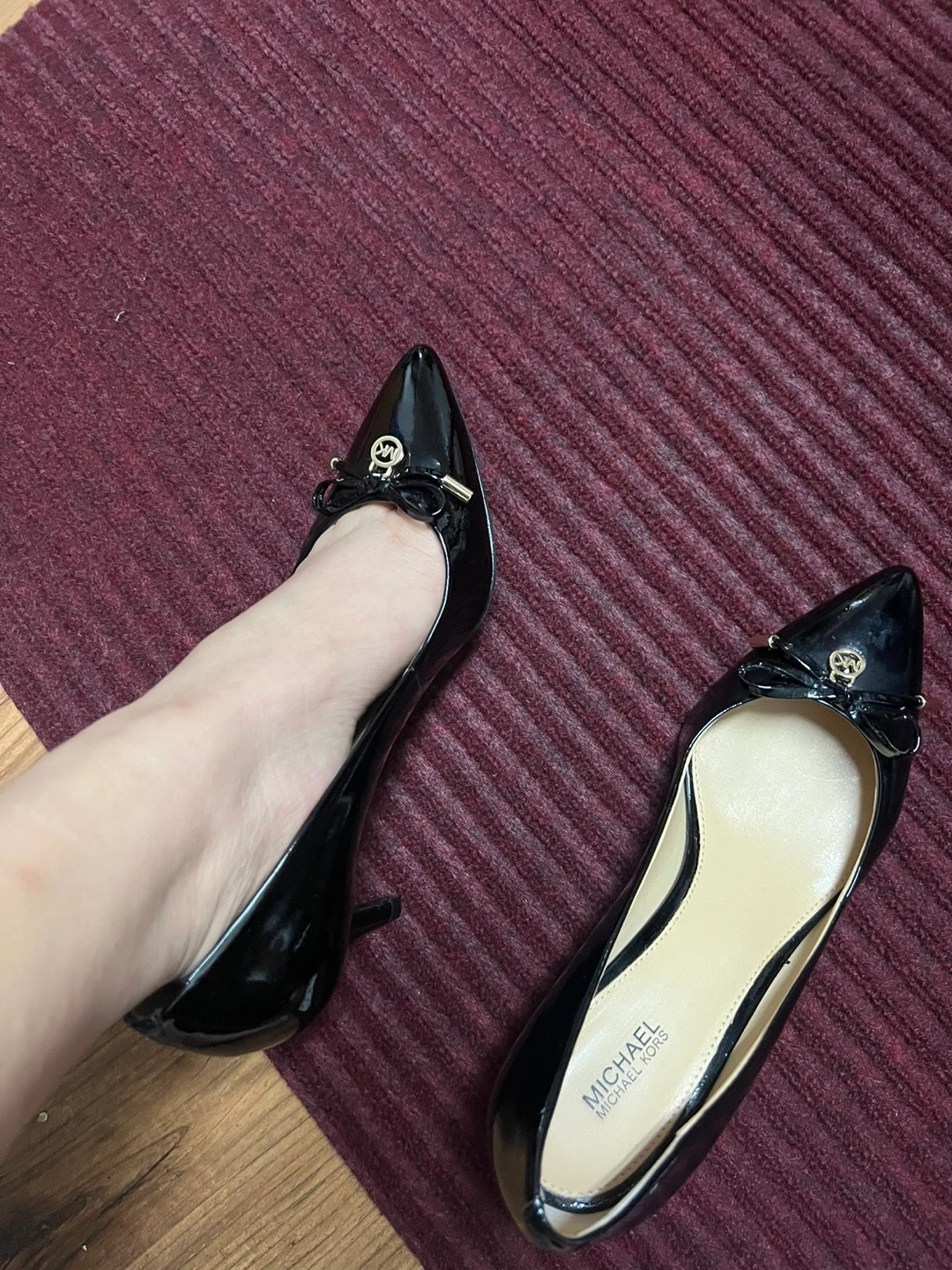 Michael Kors heels in patent leather. Size 7. Used just one time indoor. High recommend for office work outfit. Not too high nor short.