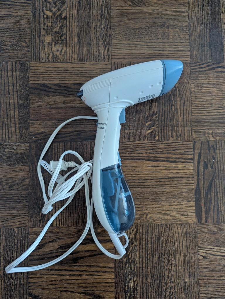 Portable fabric steamer, great for travel! Used but in good condition. My mom forgot she already bought me one so now I have two πŸ˜‚