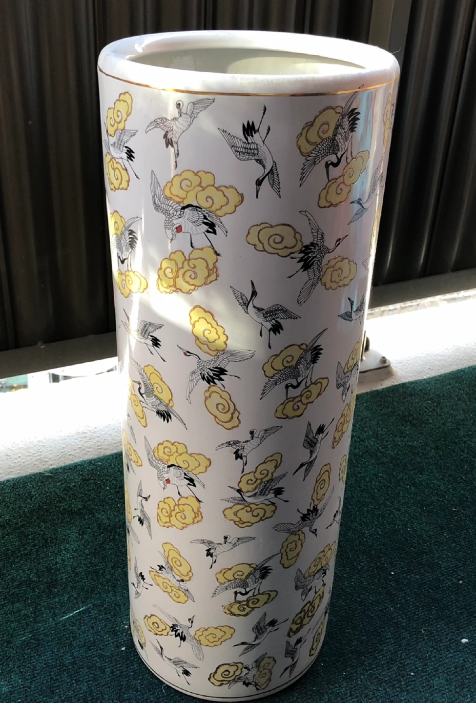 Vintage Porcelain Umbrella Stand with Crane Design