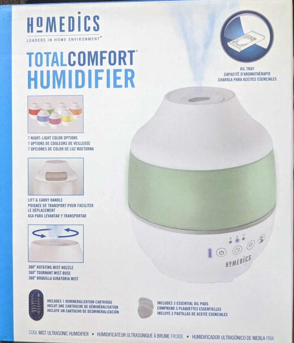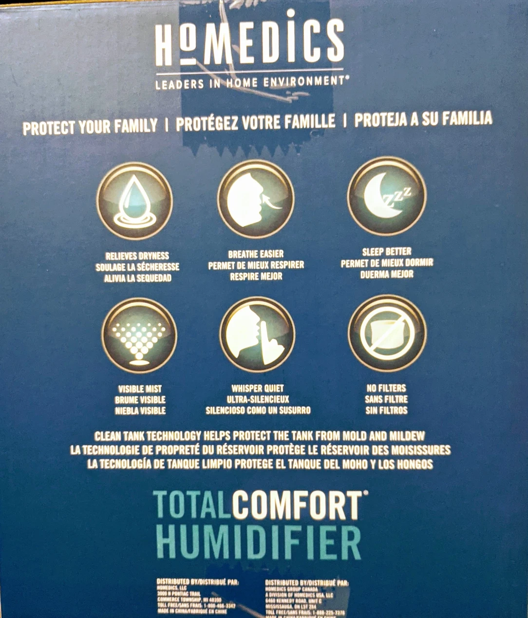 Relieves Dryness, Breathe Easier, Sleep Better, Visible Mist Whisper Quiet, and No Filters. Clean Tank Technology helps protect the tank from Mold and Mildew. Brand New.