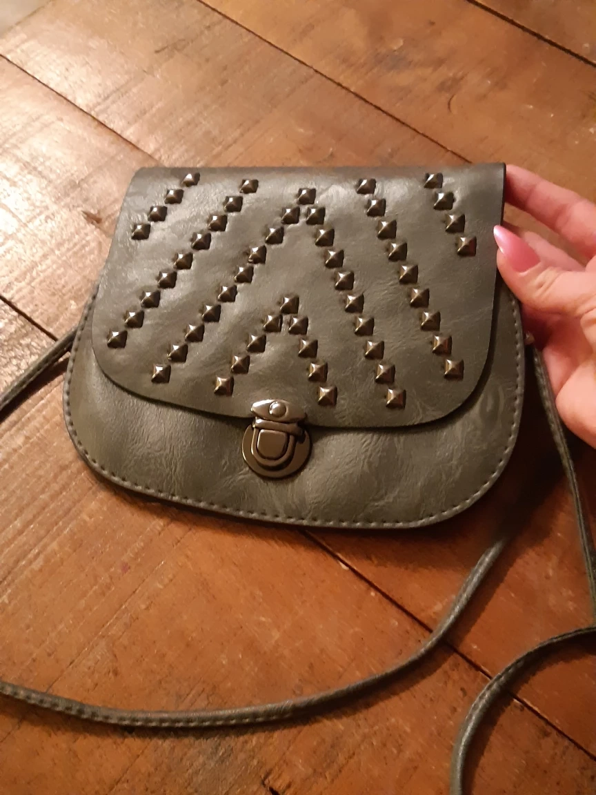 Grey Studded Crossbody / Shoulder Bag / Purse.