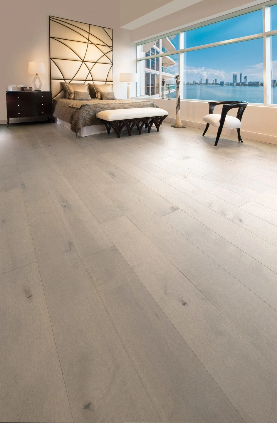 Pre-finished hardwood flooring. Beautiful light grey colour. RightLoc™ locking system.