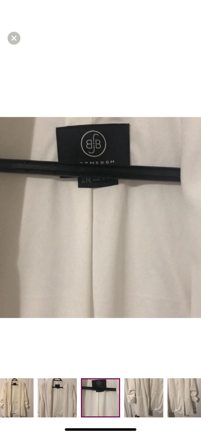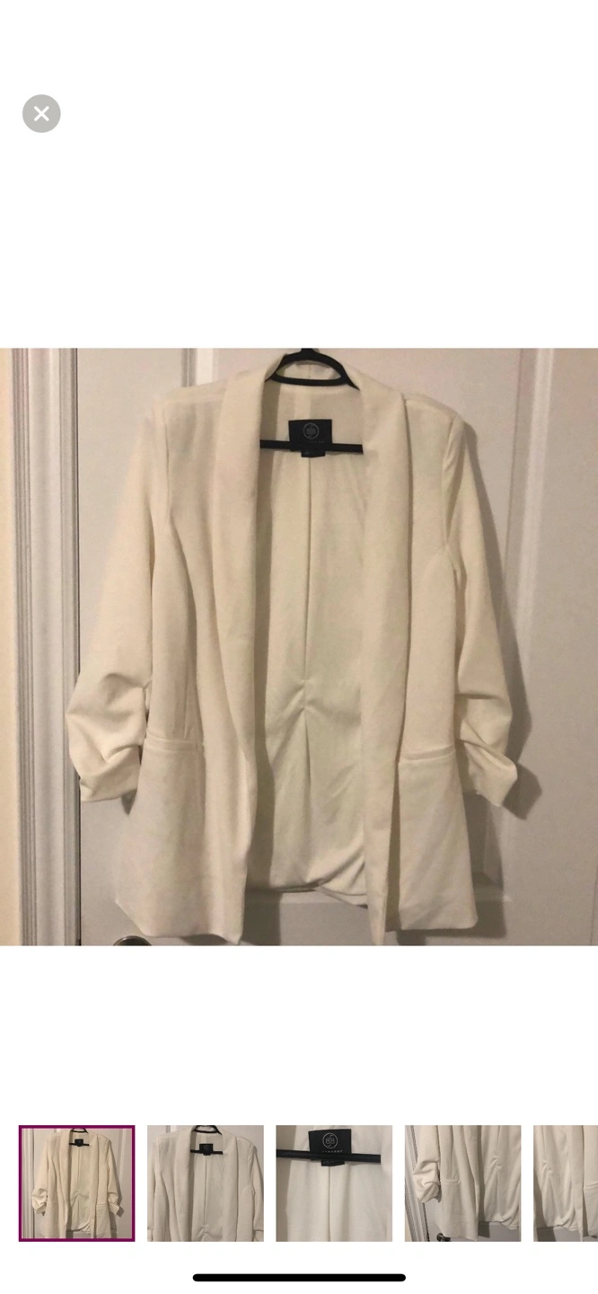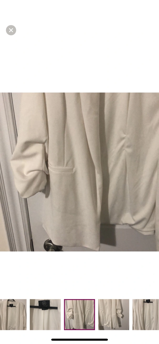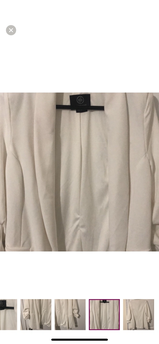 Cream-coloured blazer. Open front. Three-quarter sleeves. Size Medium. Good condition.