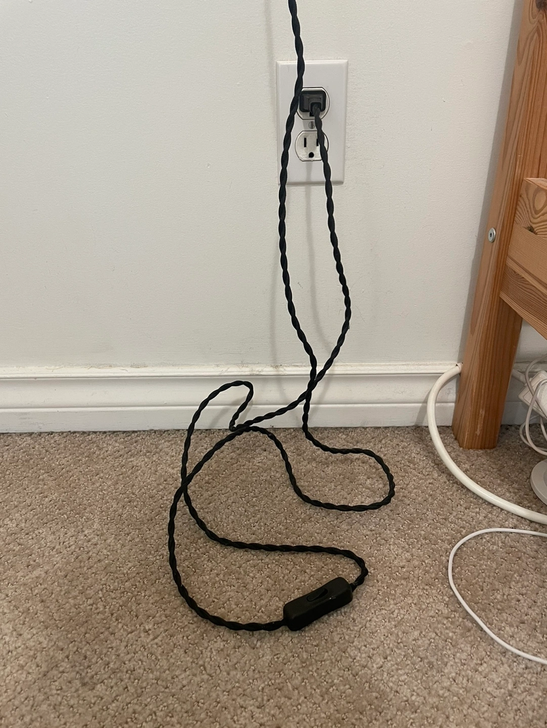 Switch 3' from plug as well as switch on the neck of the bulb fitting as well.