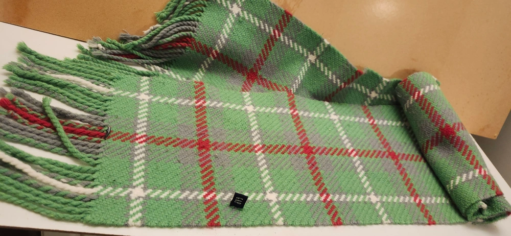 Excellent condition 5"×58".Cozy and warm winter accessory. Features a green, grey, white and red plaid pattern. Long with fringed edges. Perfect for chilly weather. price only cash only pickup no delivery. 801 O'Connor drive outside TD bank door.