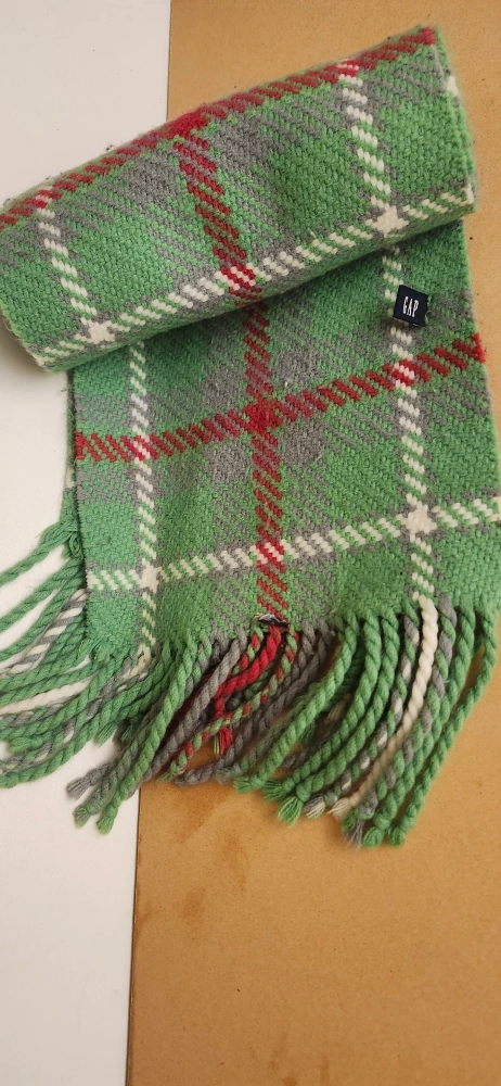 GAP Green Plaid Scarf with Tassels