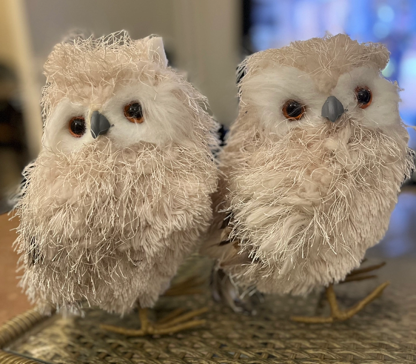 π Week Four - Pair of Fluffy Cream Owls Figurines