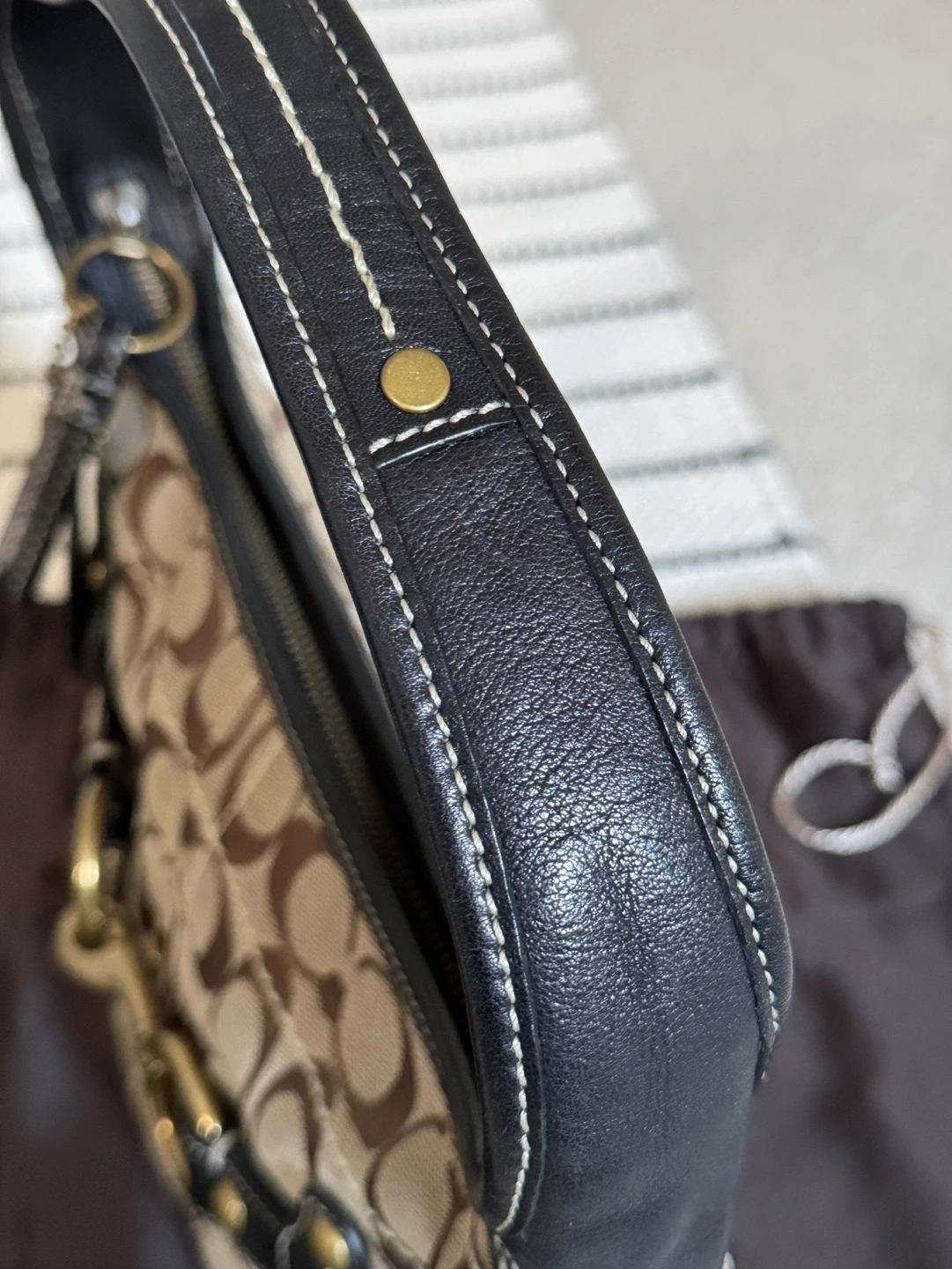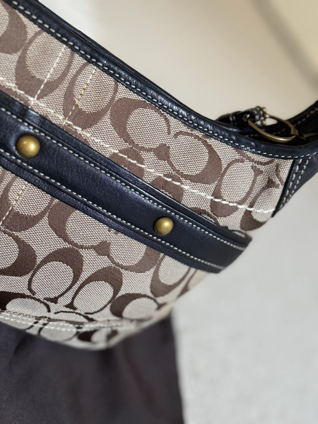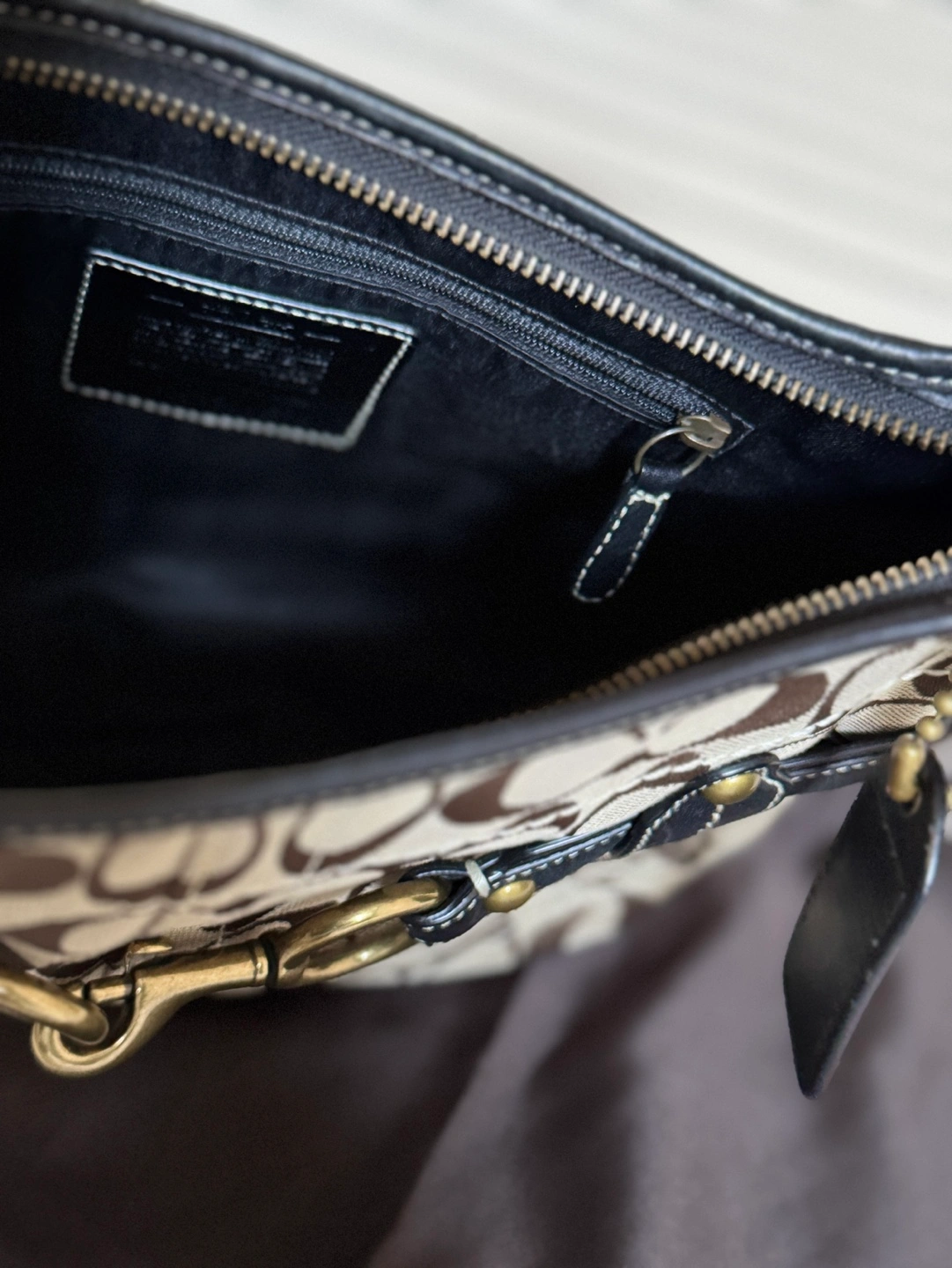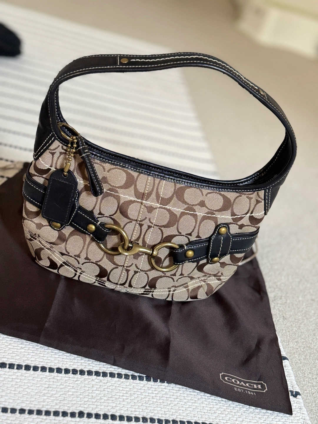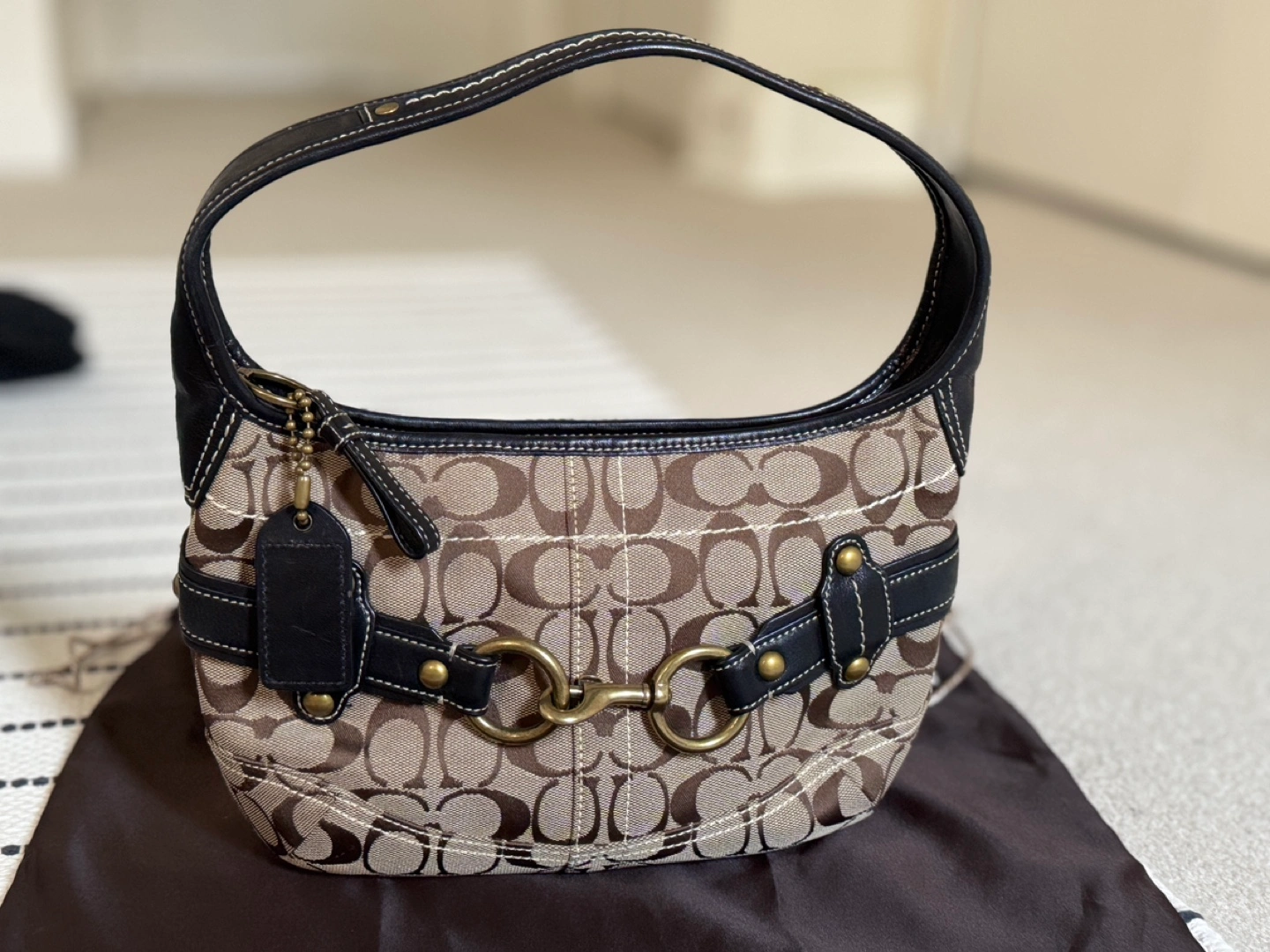 Rare discontinued design. Coach horsebit hobo bag with signature C canvas. Brown leather trim and strap. Zip top closure. Interior zip pocket. Dust bag included. In like-new condition (wore 1-2 times only and stored it inside dust bag).