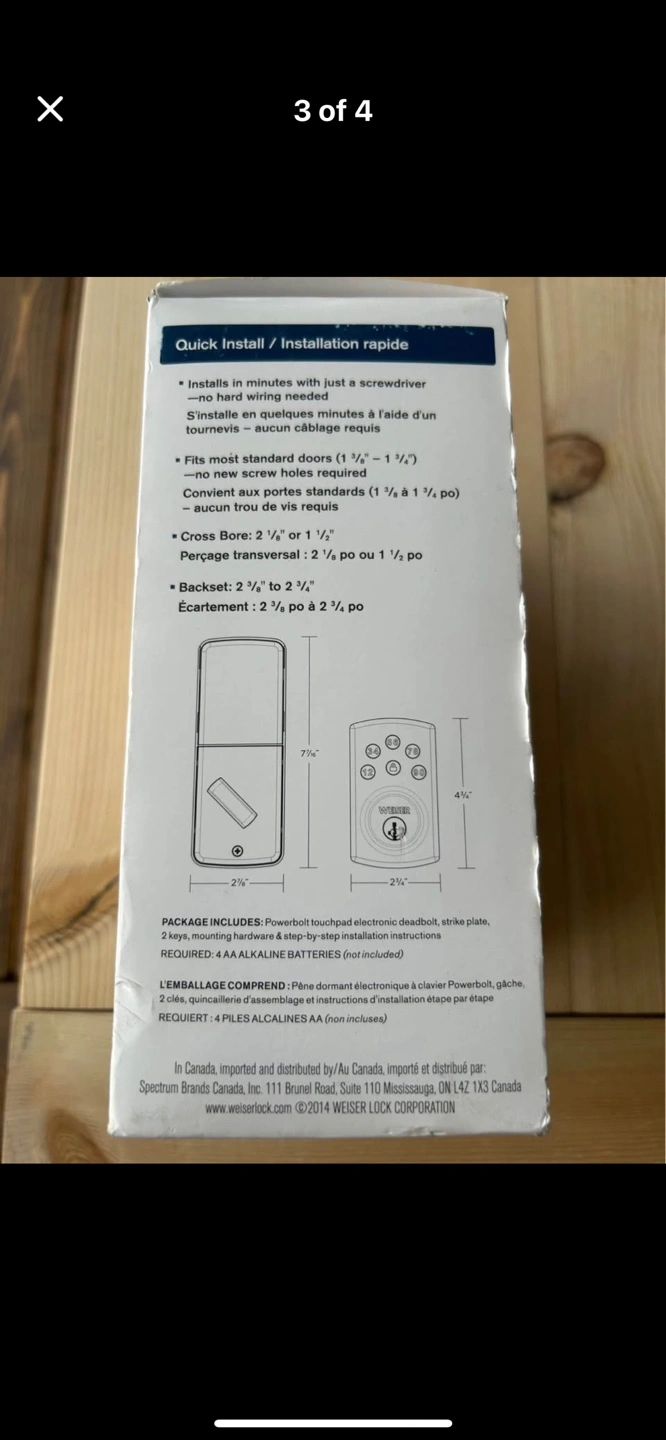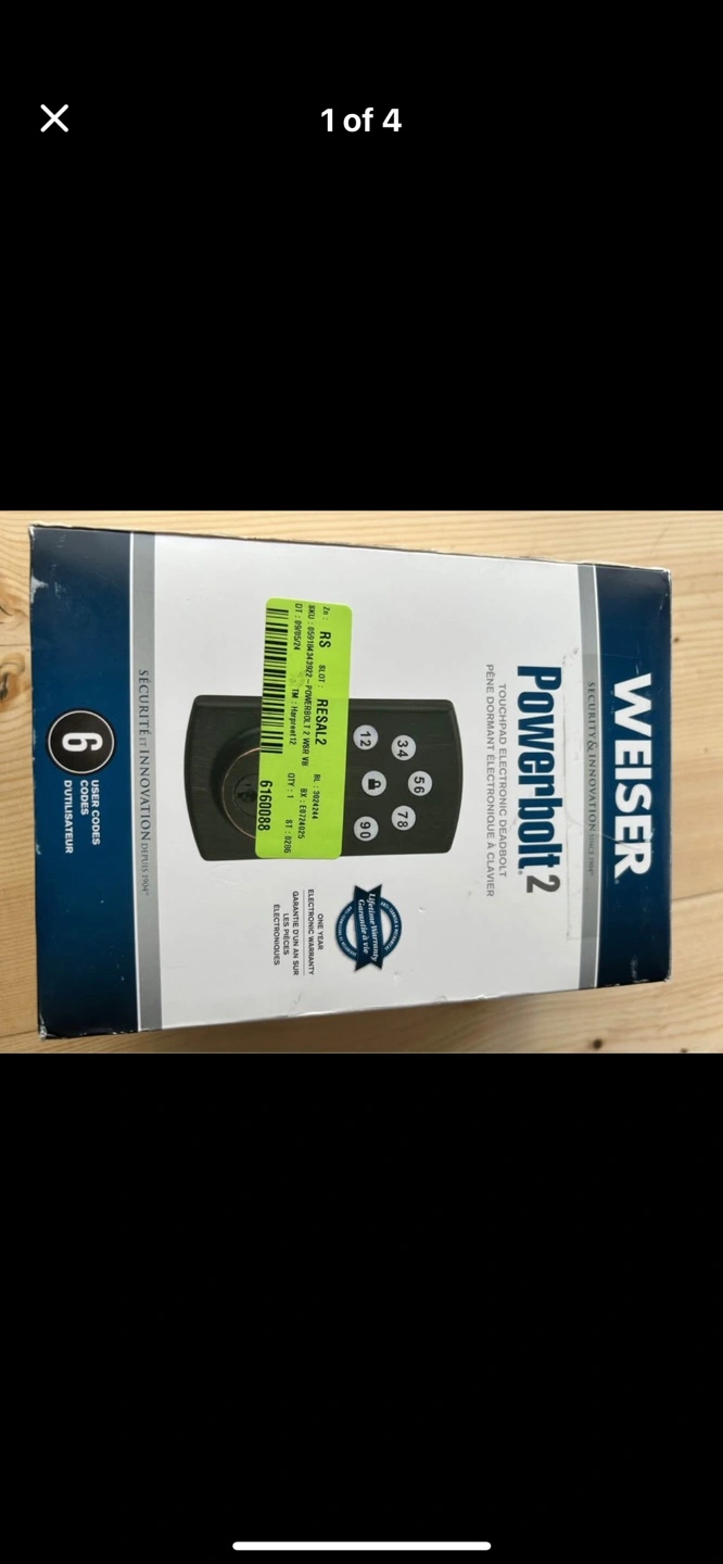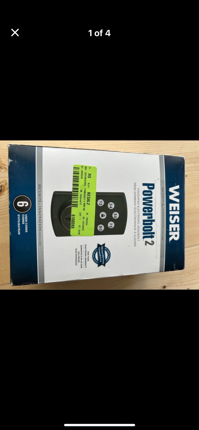 New in box. Bronze finish. Electronic keypad lock. Includes all hardware and instructions. Easy installation.