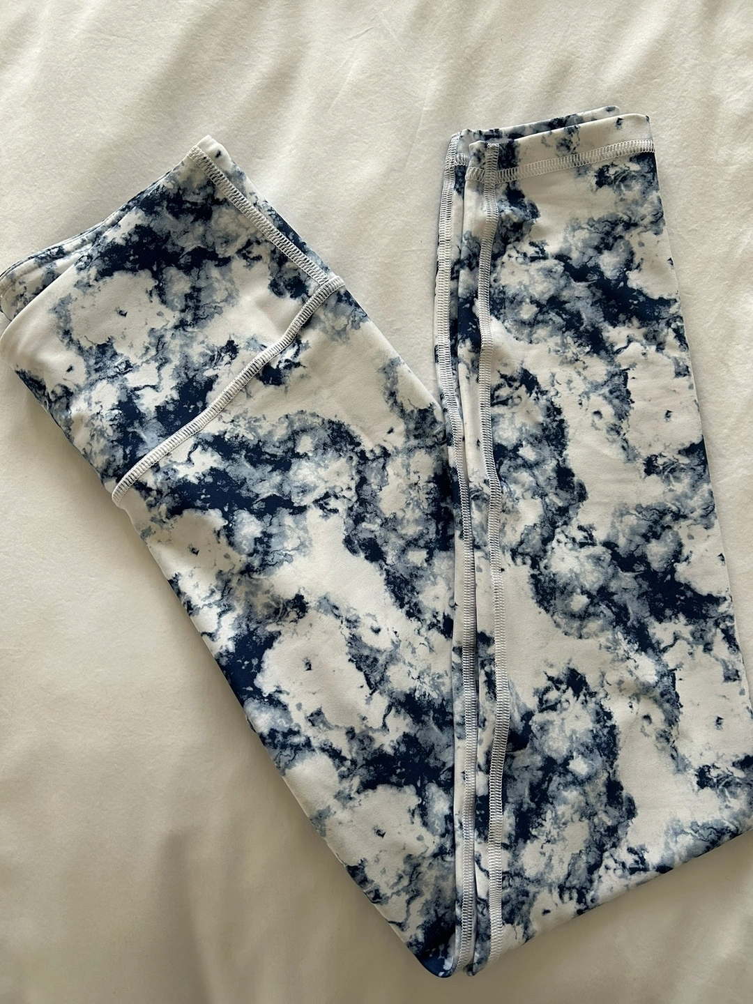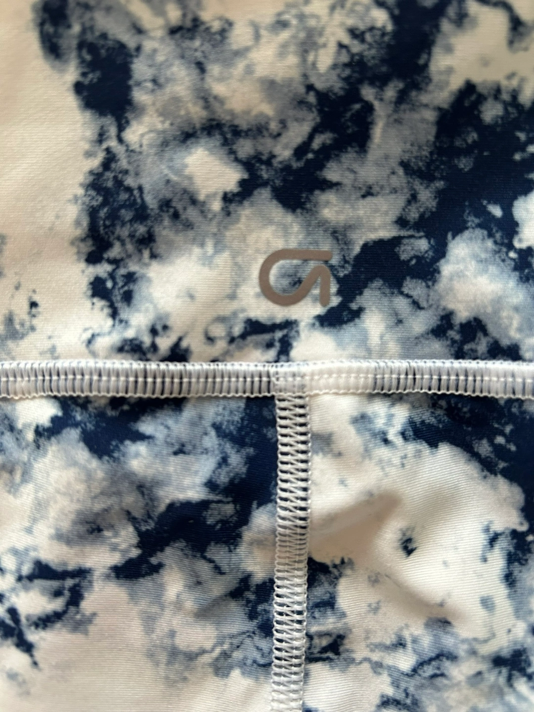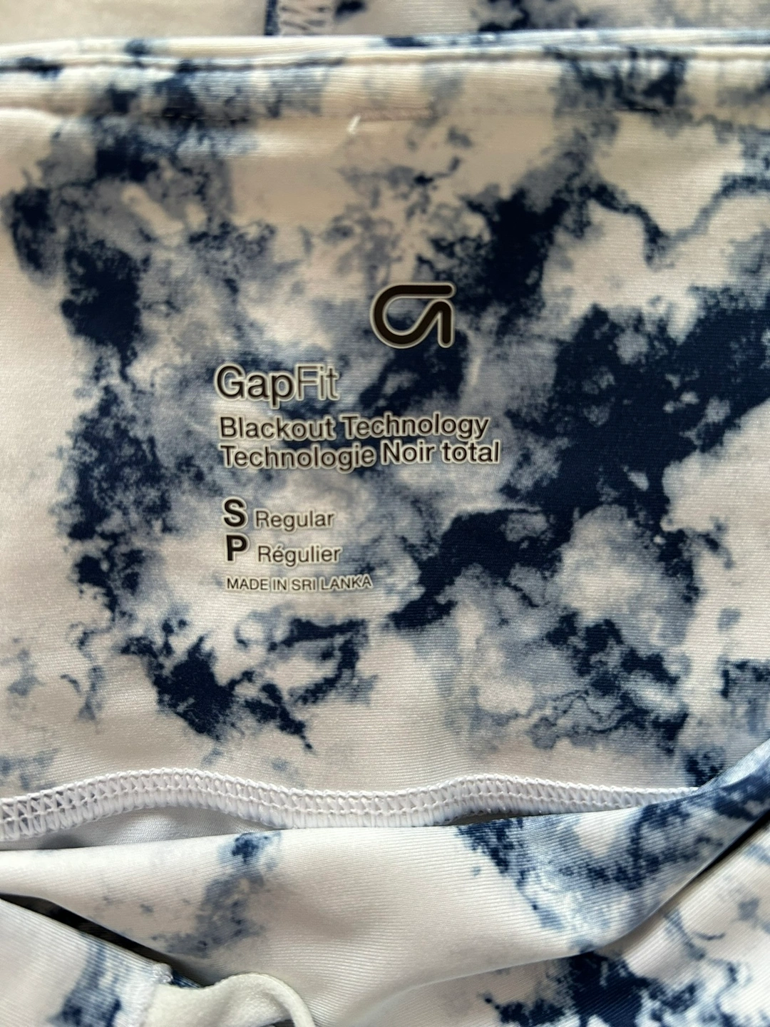 Women's size small , mid length, GapFit leggings. Blackout technology. Blue and white tie-dye pattern.