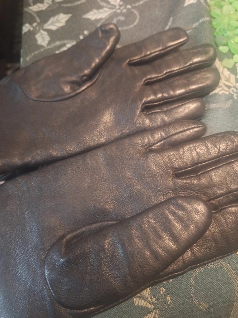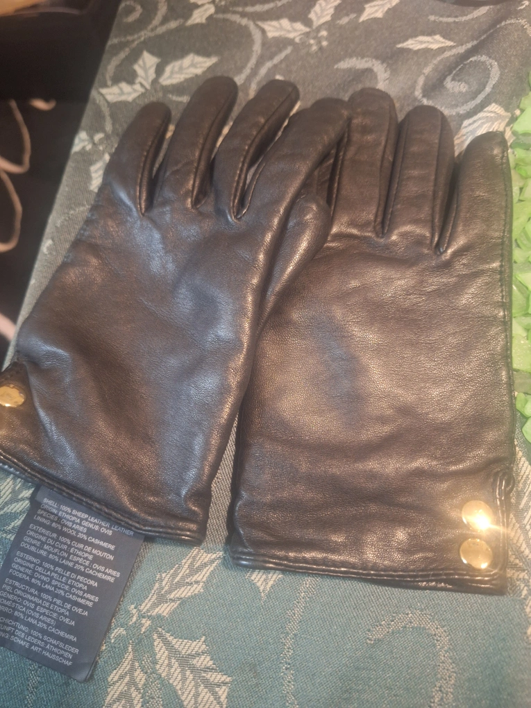 Shell: 100% sheep leather; lining: 80% cashmere, 20% wool Touchscreen capability; pintucks at backhand; tonal whipstitches Lined Professional dry clean by leather and suede expert