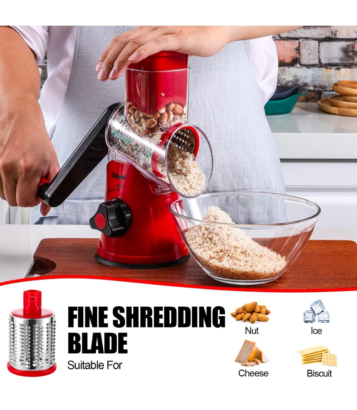 Kitchen Cheese Grater, Rotary Mandoline Vegetable Slicer with Interchangeable Blades, Easy to Use Rotary Grater Slicer for Fruit, Vegetables, Nuts