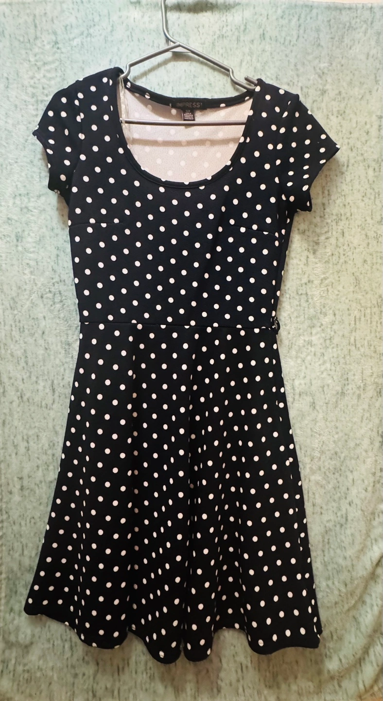 198Adorable black and white polka dot dress. Short sleeves, scoop neck, skater style. Size S.Very nice in personal.For pick up only.