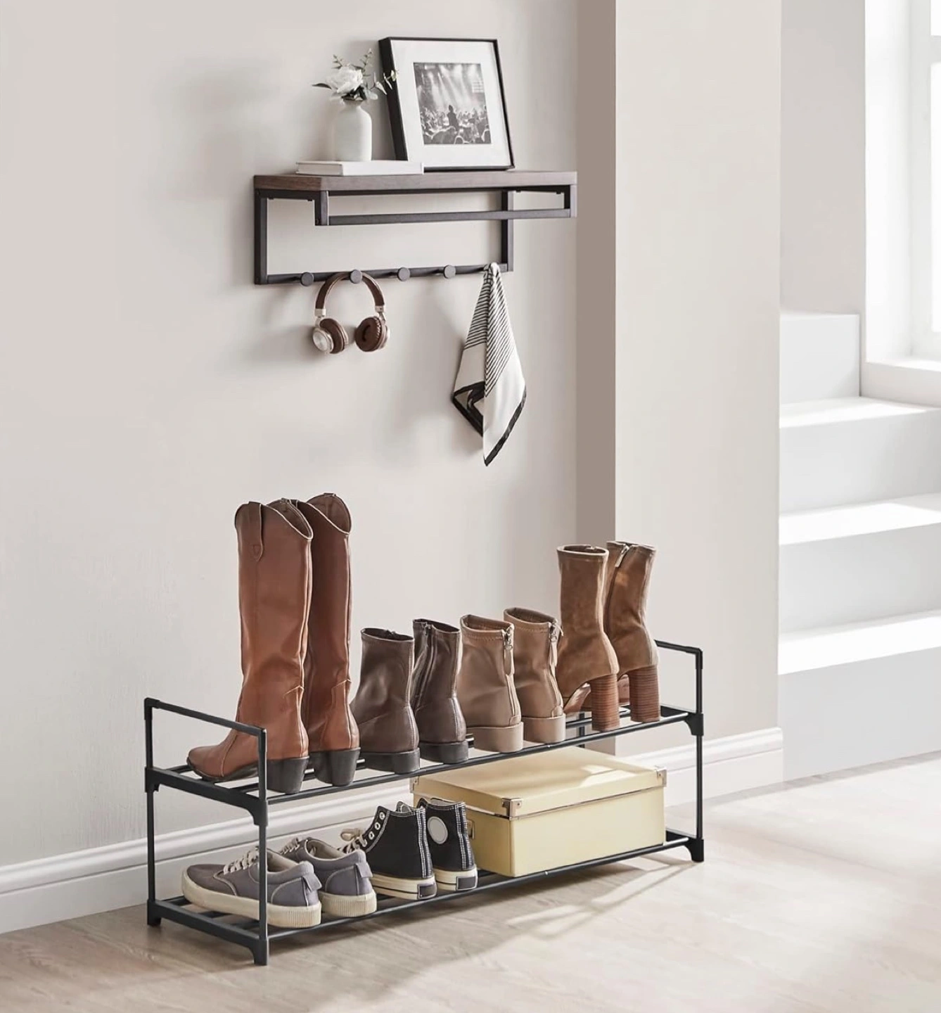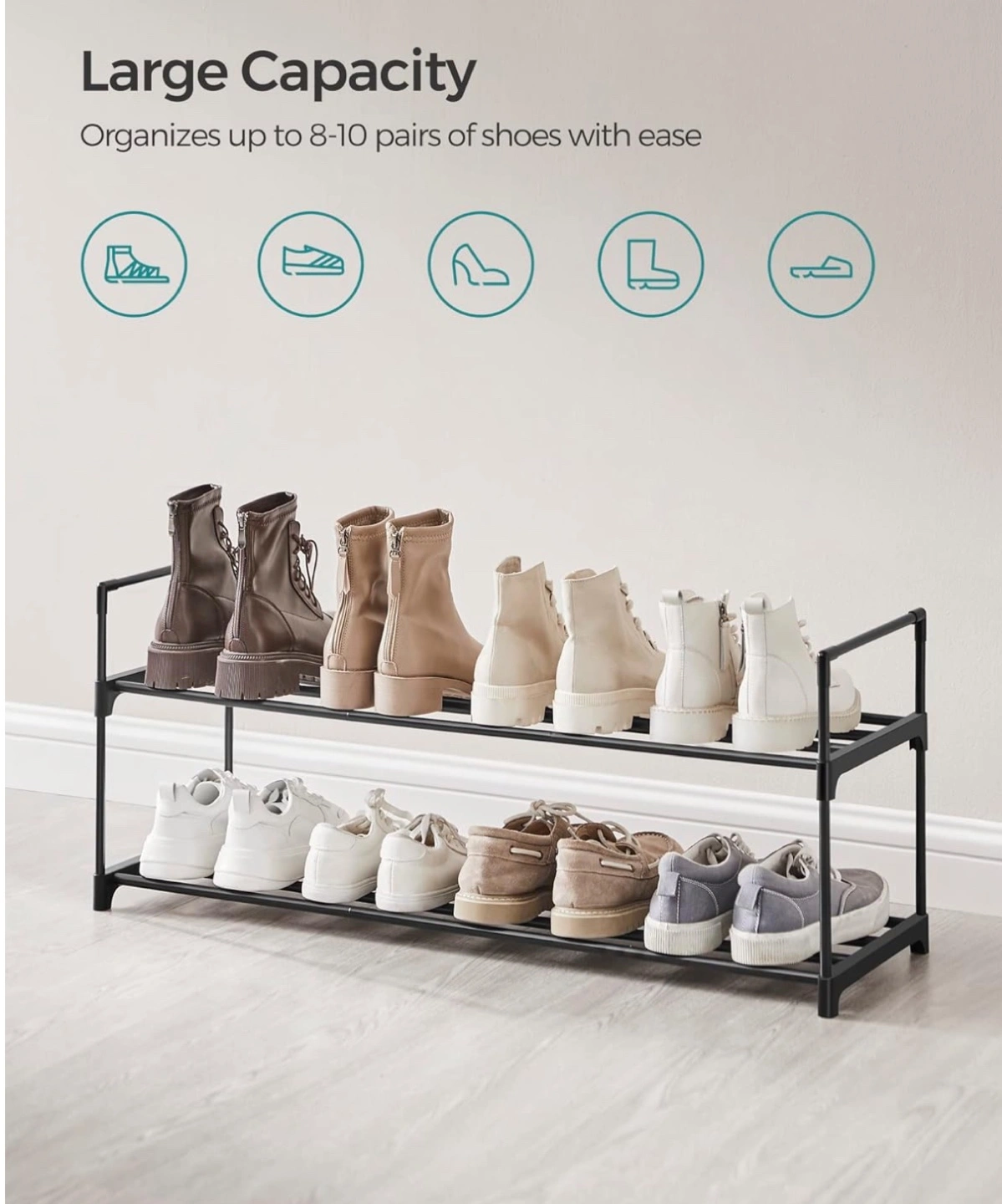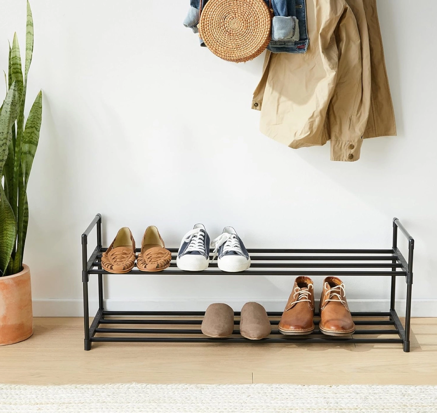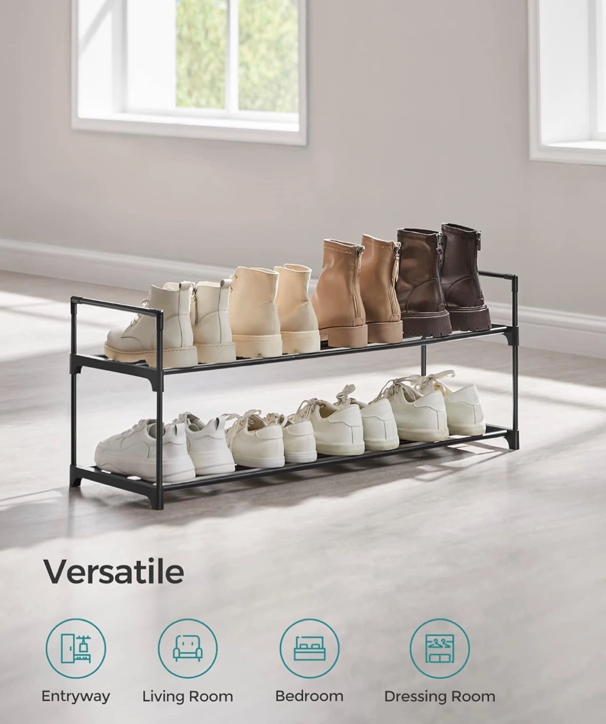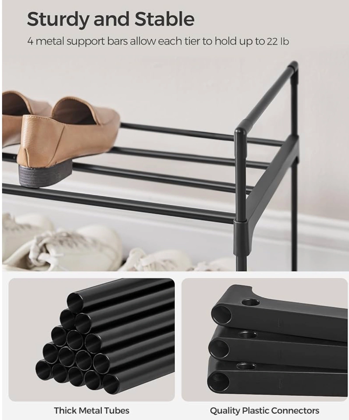 Two-Tier Black Metal Shoe Rack