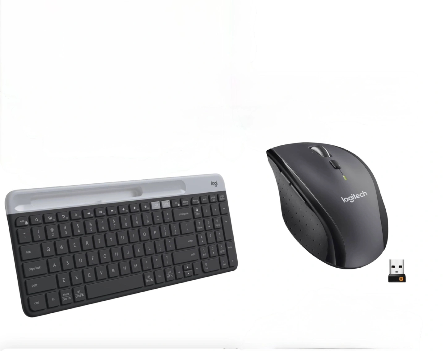 Logitech M705 Marathon Wireless Mouse, 2.4 GHz USB Unifying Receiver, 1000 DPI, 5-Programmable Buttons, , Compatible with PC, Mac, Laptop, Chromebook - Black & Logitech K585 Multi-Device Slim Wireless Keyboard, Built-in Cradle for Device; for Laptop, Tablet, Desktop, Smartphone, Win/Mac, Bluetooth/Receiver, Compact, Easy Switch, - Graphite
