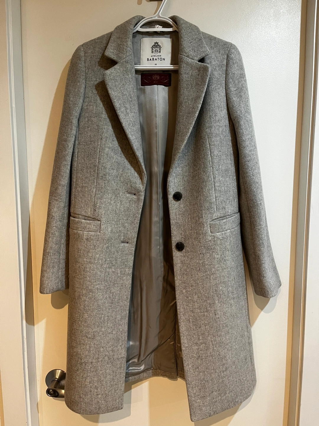 Gorgeous grey wool and cashmere Aritzia coat, size extra small. Features a classic, tailored design. Excellent condition, only worn a few times and dry cleaned before selling. It’s unfortunately too small for me so I haven’t been able to wear it 🥺