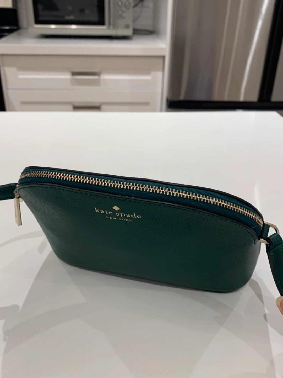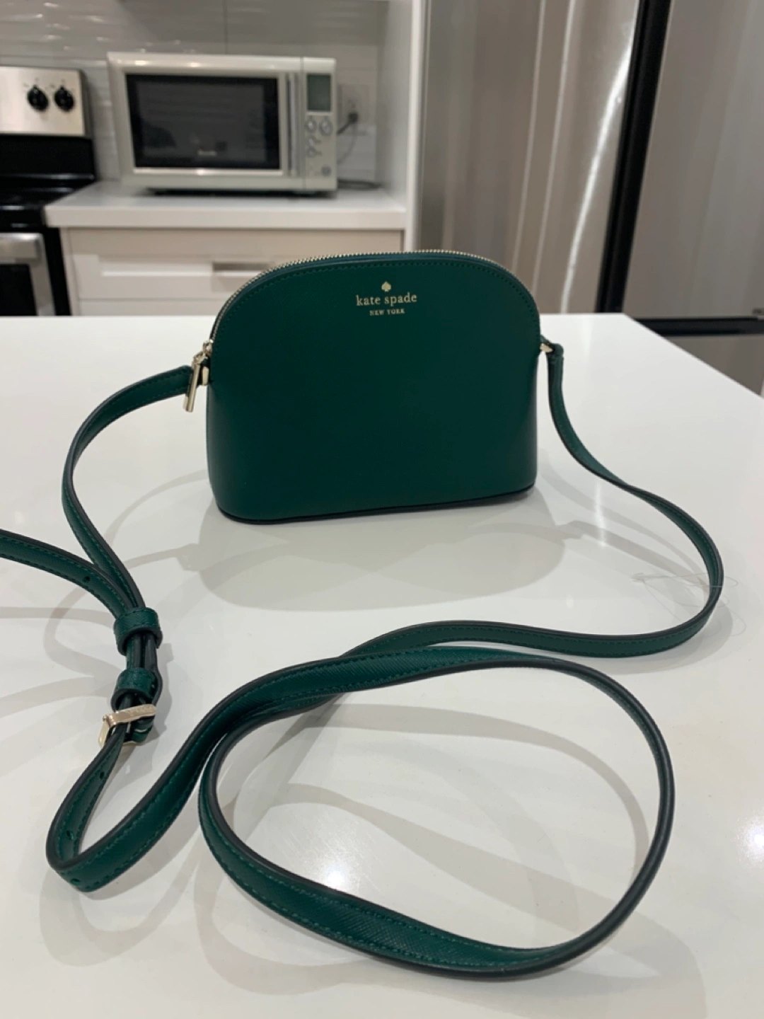 428Small crossbody bag. Dark green leather. Adjustable strap. Zip closure. Interior zip pocket. Brand new and comes from a smoke and pet free home. Serious buyers only please!