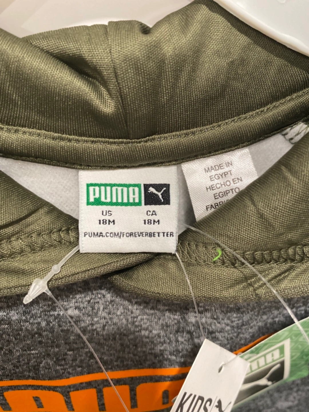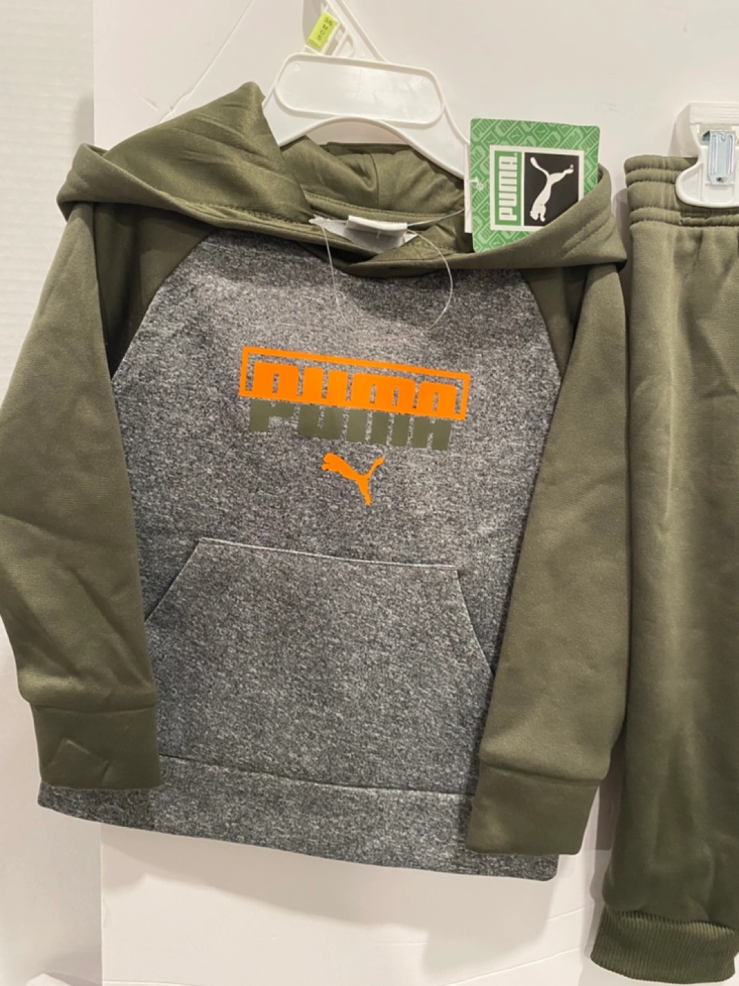 Cute Infant Puma 2 pcs Tracksuit. Olive green and gray. Size 18M. Hoodie and jogger pants. New with tags.