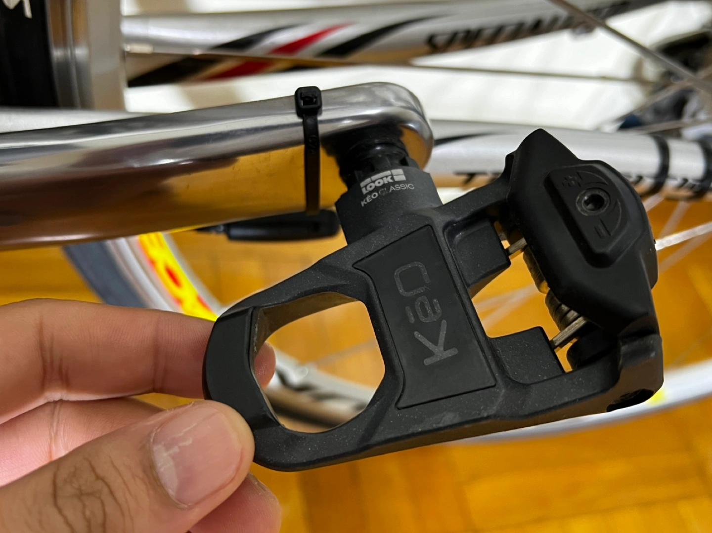 Has clip pedals but can be ridden without shoes as I do.