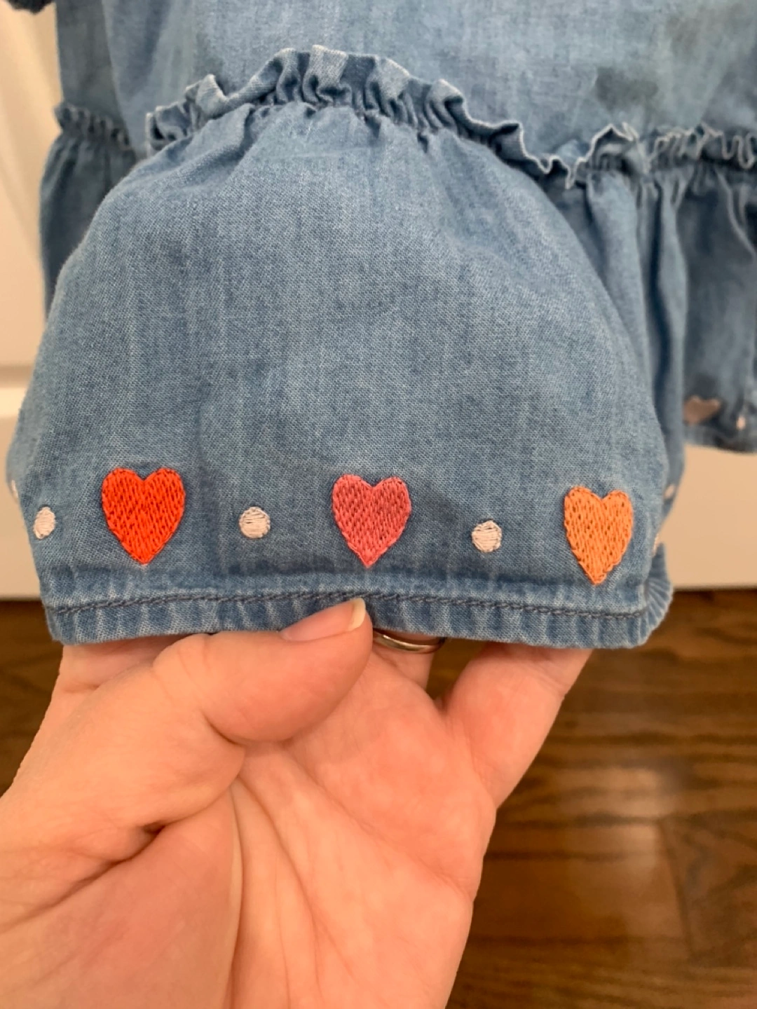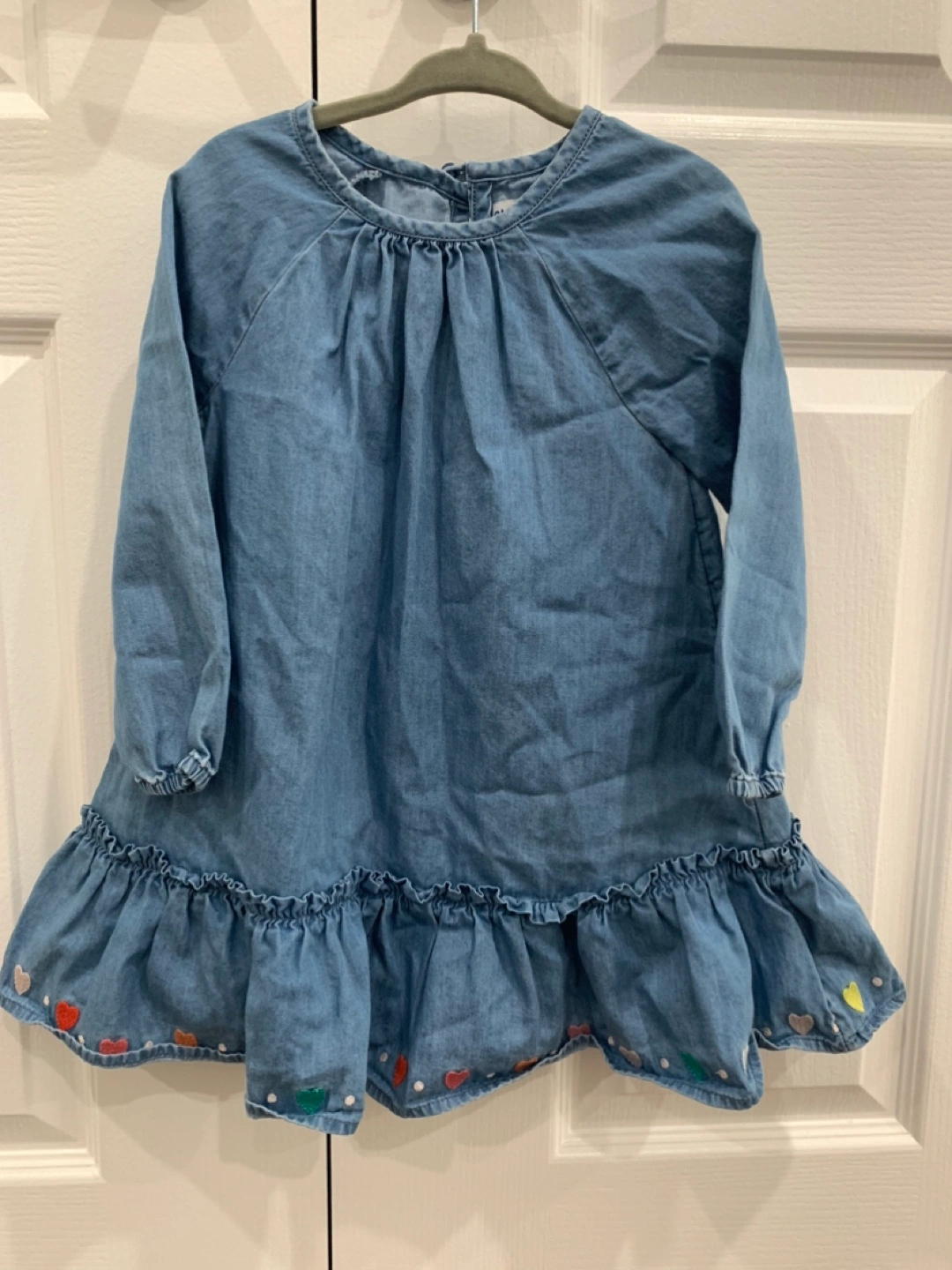 511Size 3T Old Navy Denim long sleeve dress with heart embroidered details. Great condition.