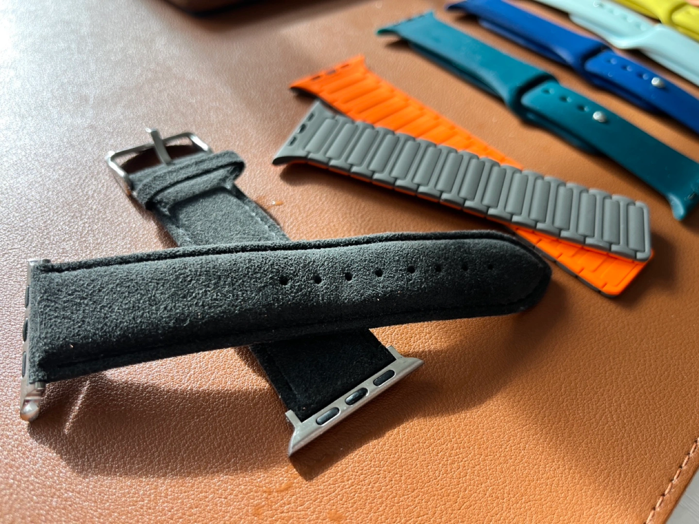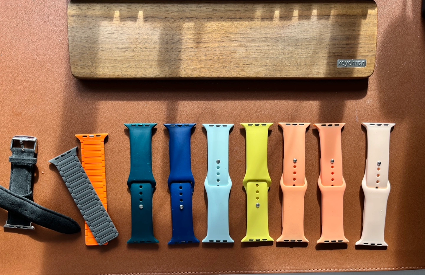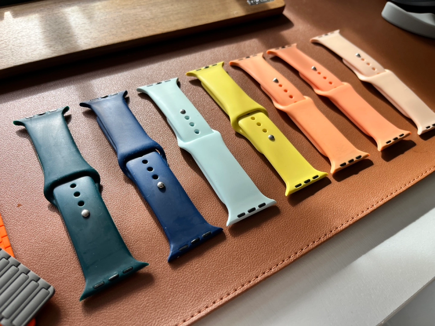 Collection of Apple Watch bands (M/L models, the larger sized one!). Multiple colours and styles available. Includes silicone and leather options. Great for customizing your Apple Watch.