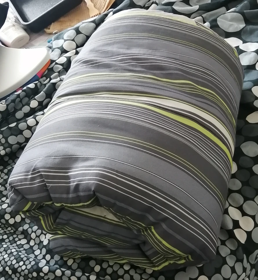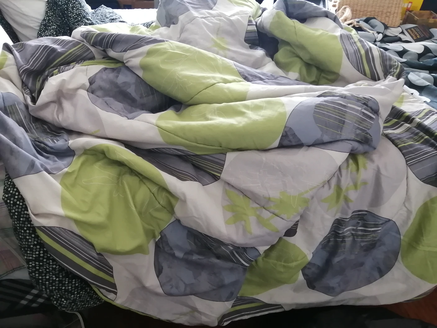 Double-sized comforter. Grey and green abstract design. Soft and cozy. Machine washable. Good condition.