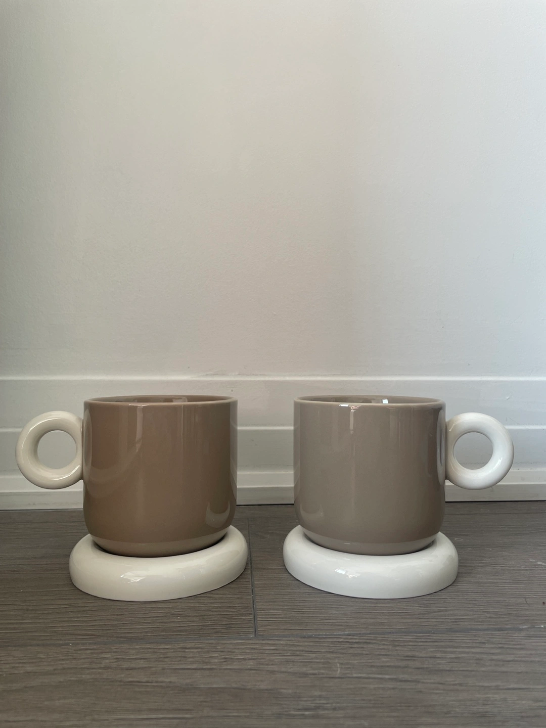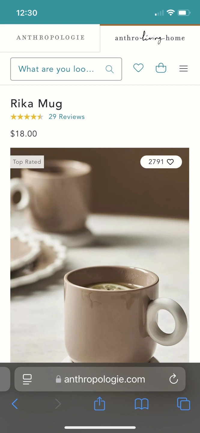 Pair of Anthropologie Rika mugs - they sell for $18 individually, asking for $25 for both (so $12.50 each). Neutral taupe colour. Each mug sits on a small white coaster. Excellent condition - never used. Dishwasher and microwave safe.