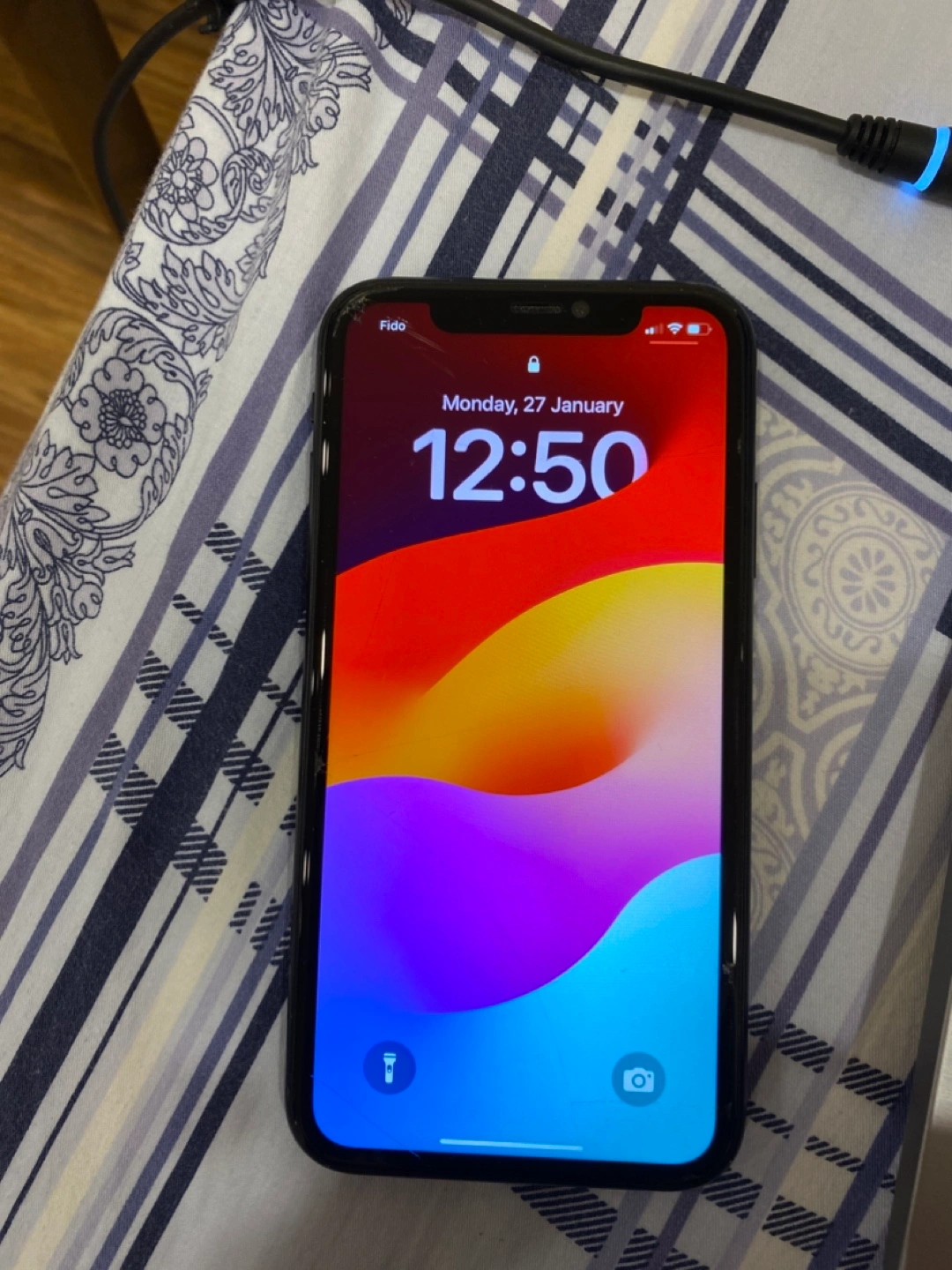 Used iPhone XR in black. Some cosmetic damage visible. 88% battery health. iOS version 18.2.1.Screen protect has minor damage.