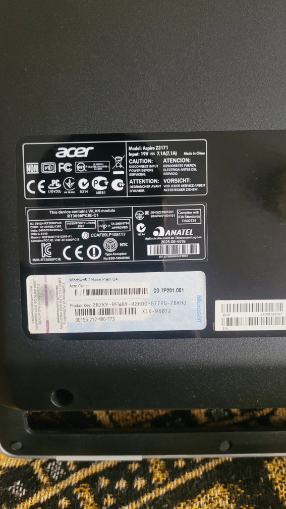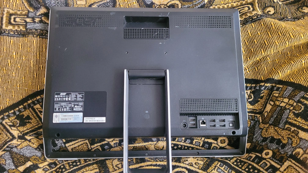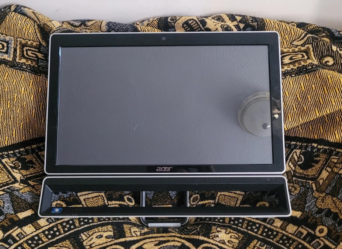 185All-in-one desktop computer. Includes Windows 7 Home Premium. Model Z3171. Black and silver colour. Features a built-in screen and base. Has scratches on the screen. No wires. Haven't turned it on in a while.