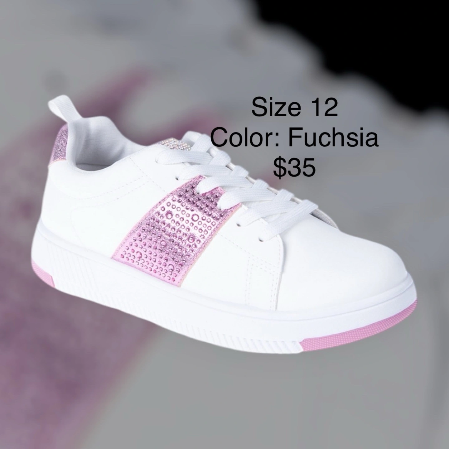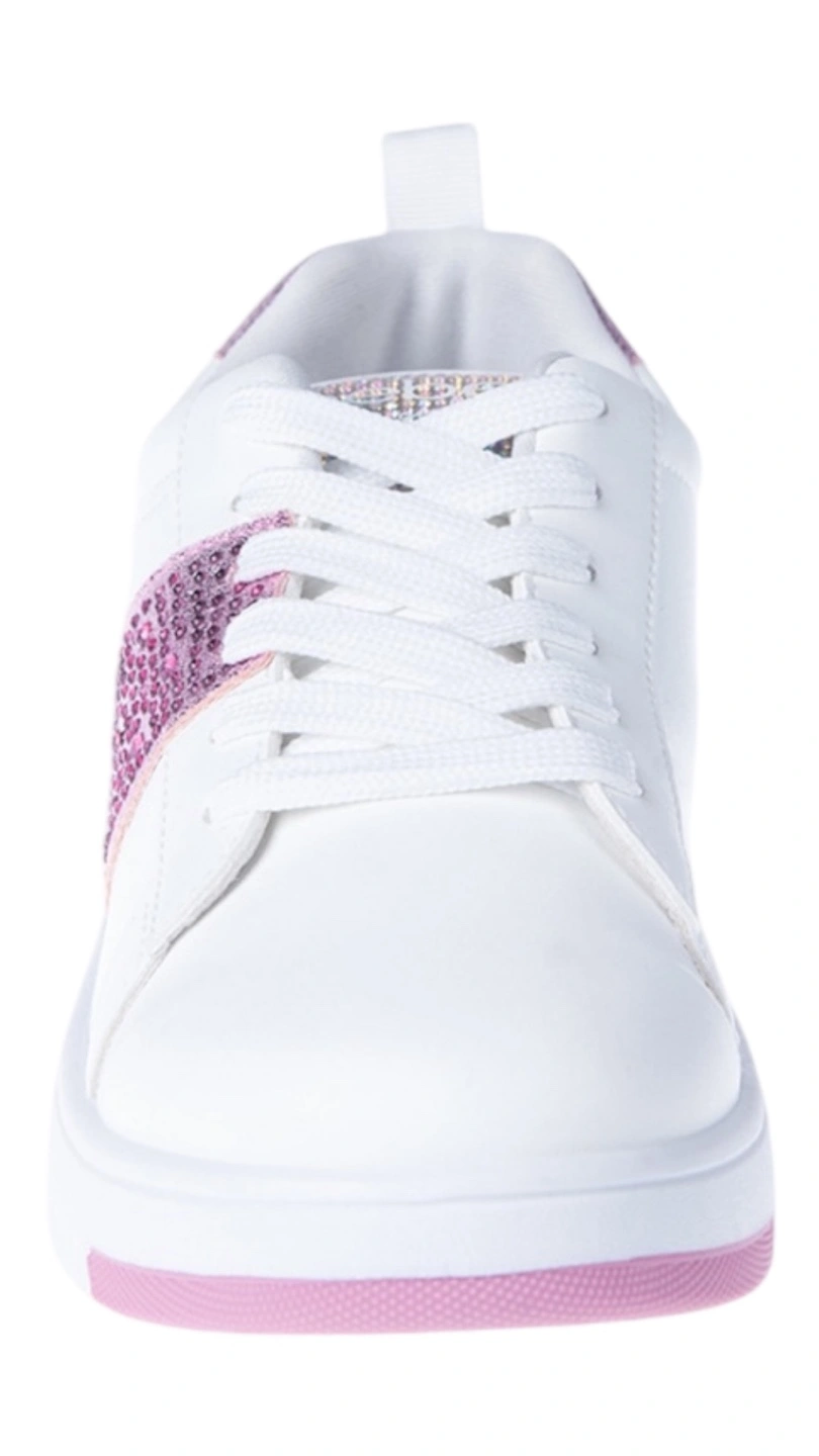 White sneakers with fuchsia accents. Pink sparkly stripes. Size 12. Great for everyday wear.