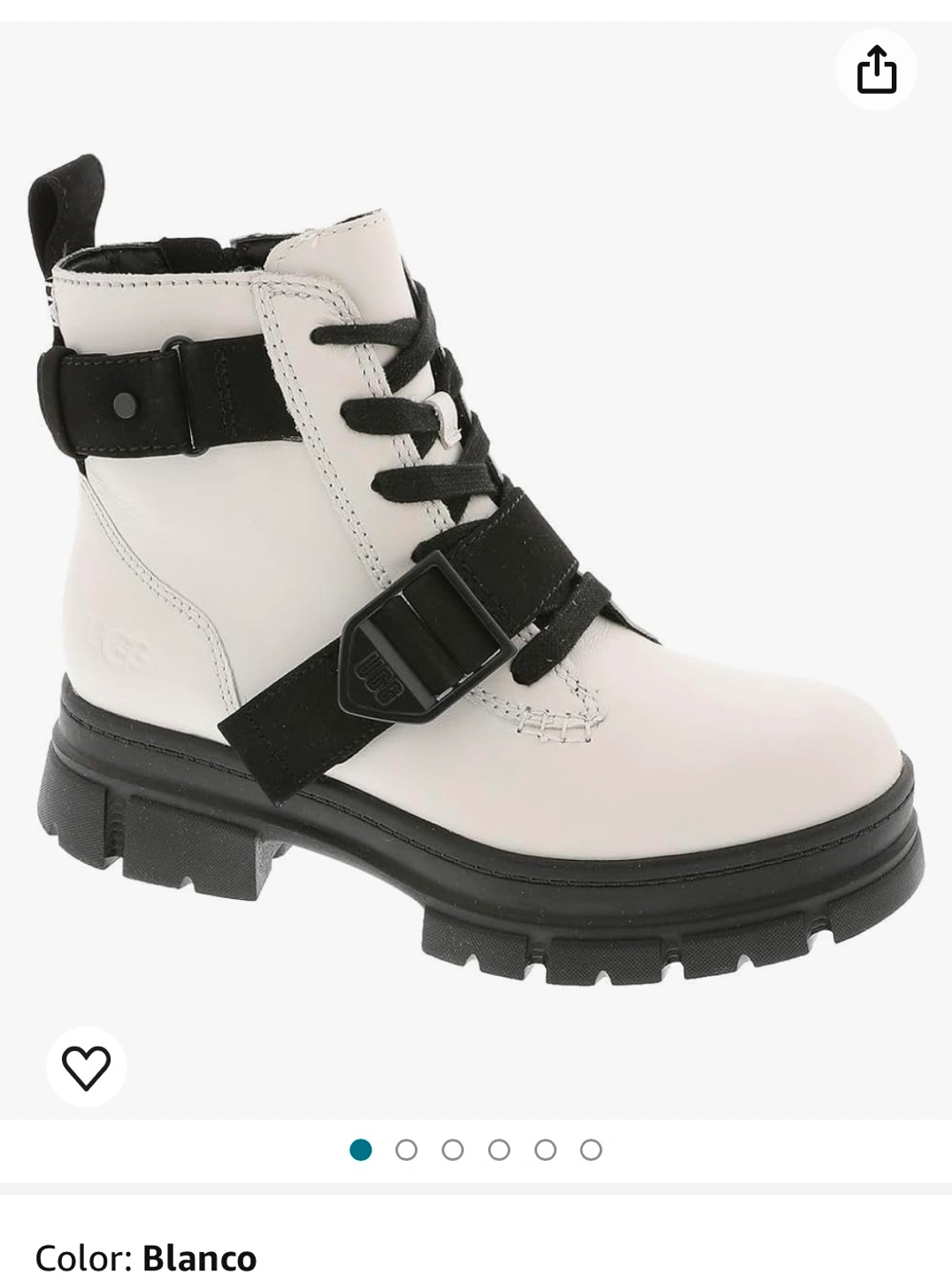 White leather UGG Neutra boots. Lace-up ankle boots with buckled straps. Chunky black sole. Size 7.