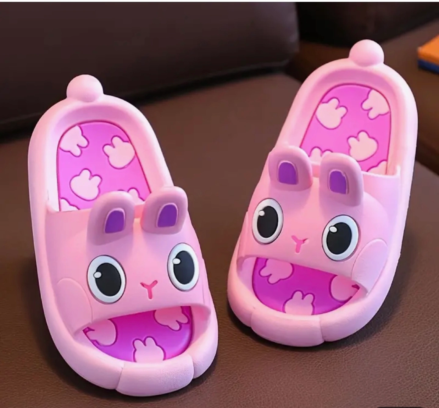 Pink bunny slippers, perfect for summer. Soft and comfortable. Great for indoor or outdoor wear. Adorable cartoon design. size 11.5