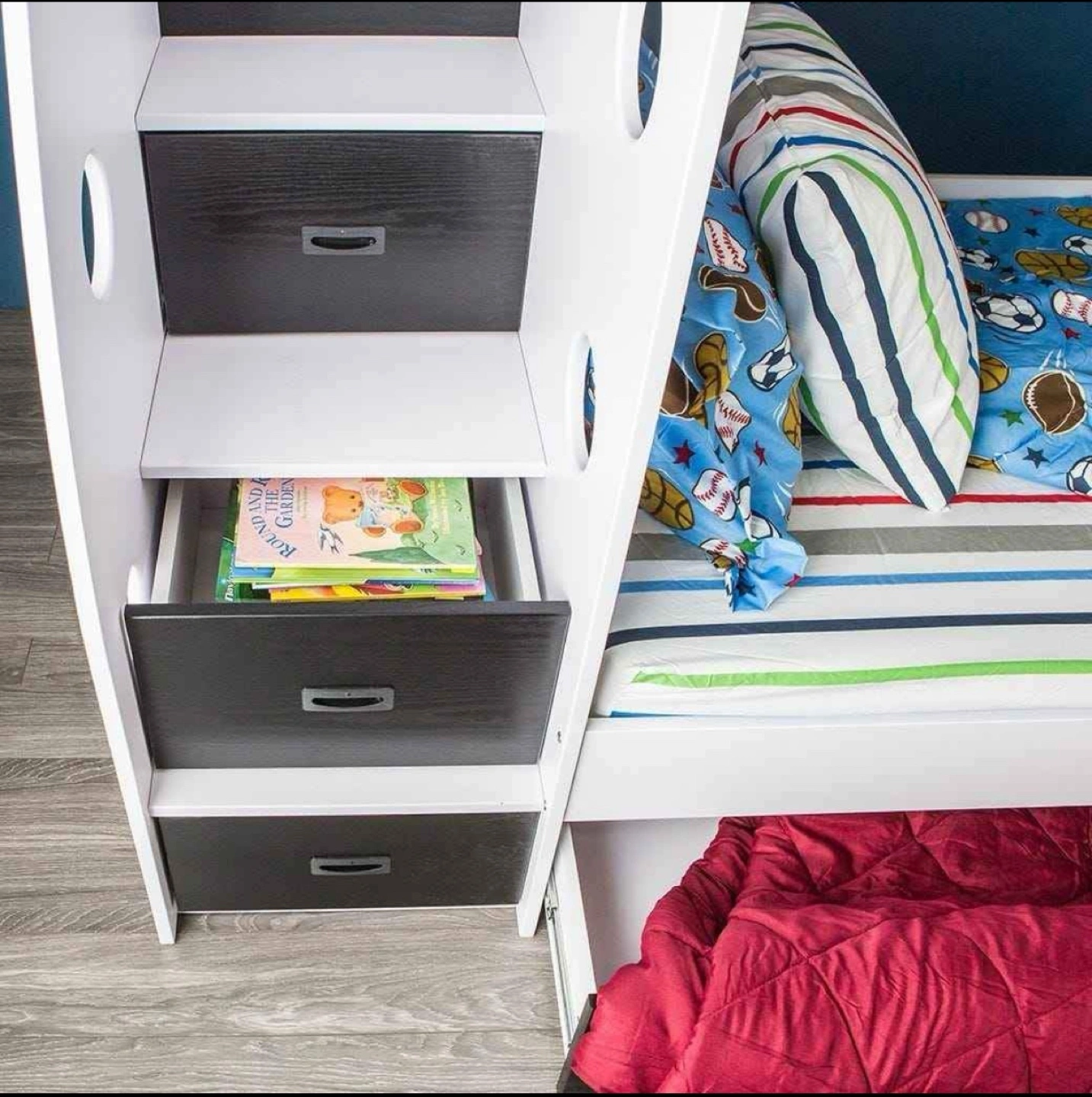 Kids Bunk Bed with Storage - Black and White