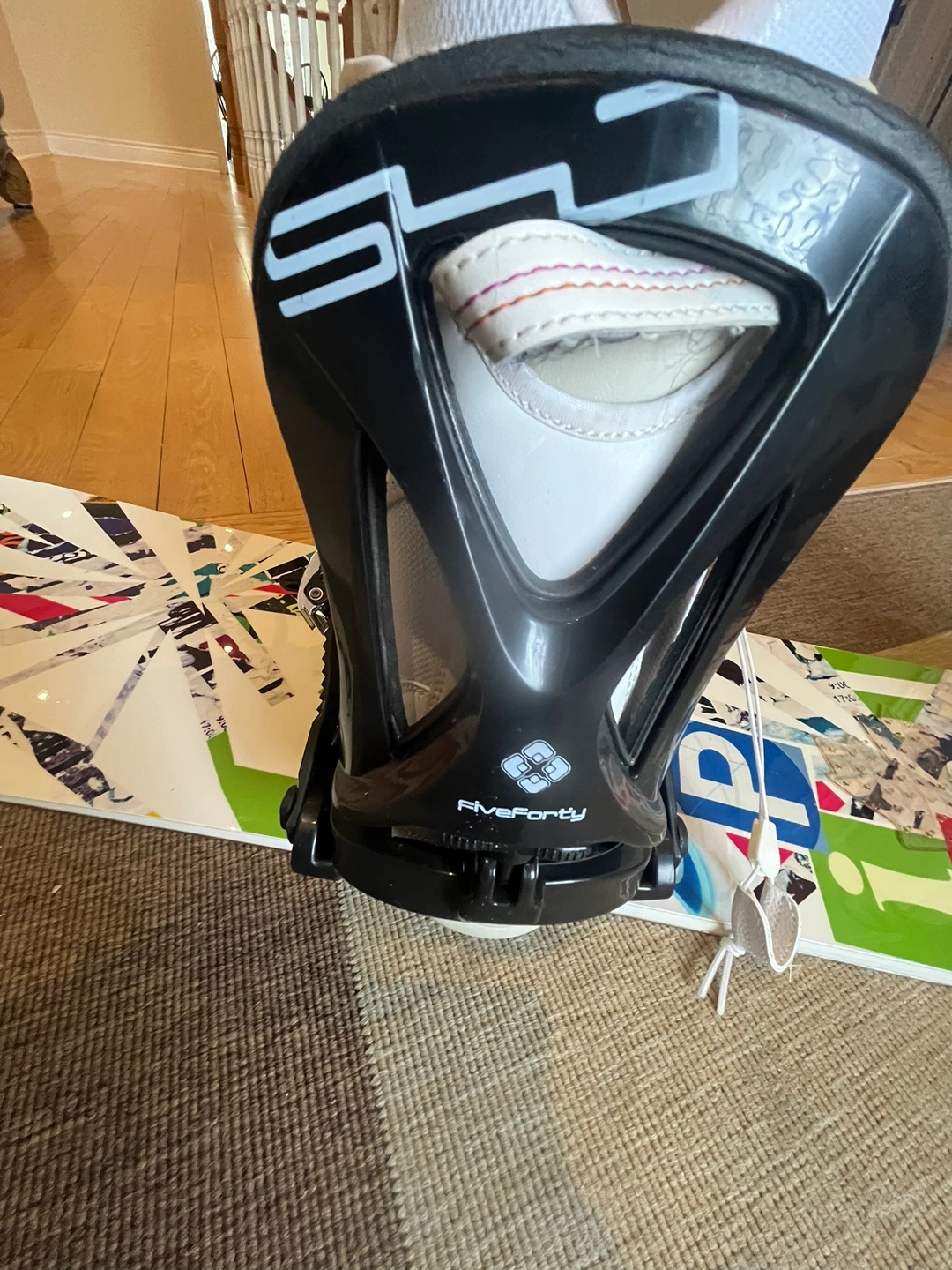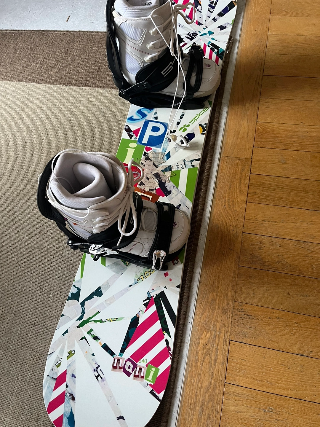 Used snowboard , bindings & boots Excellent condition. Colorful design. Size ladies 8.5 used 2 times , board about 145cm