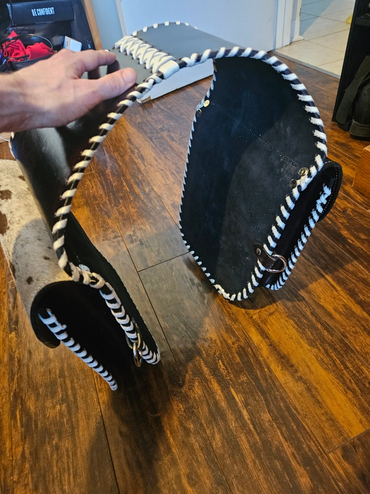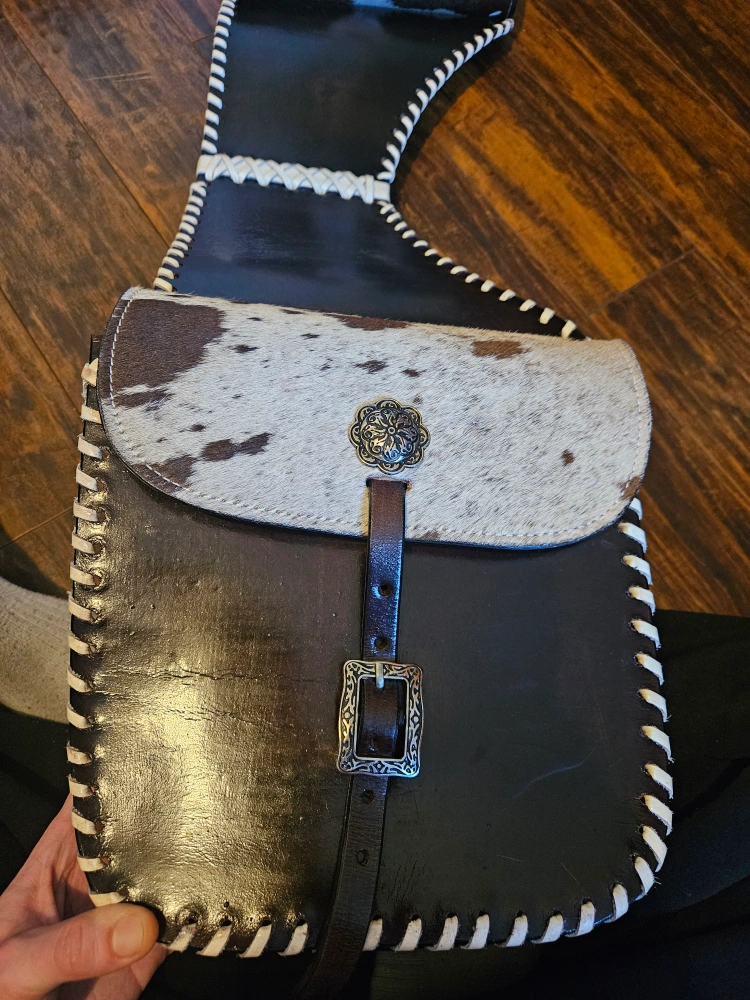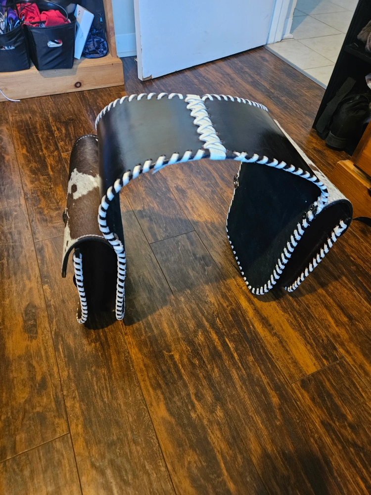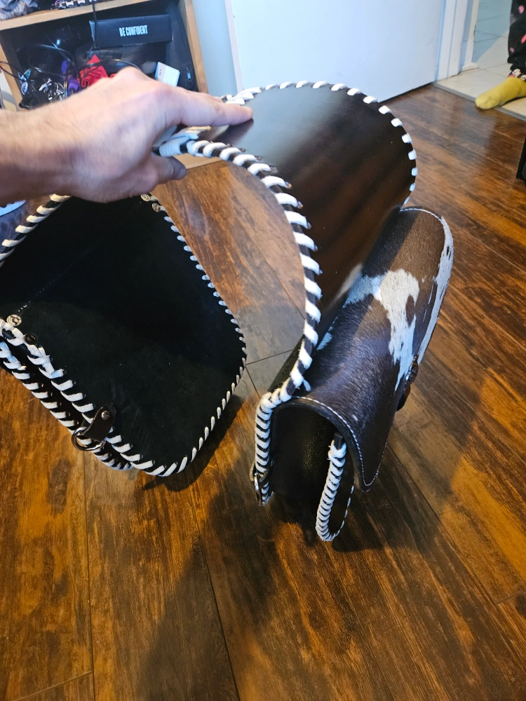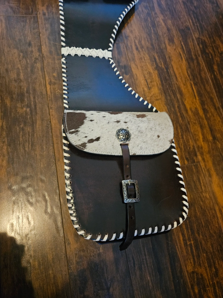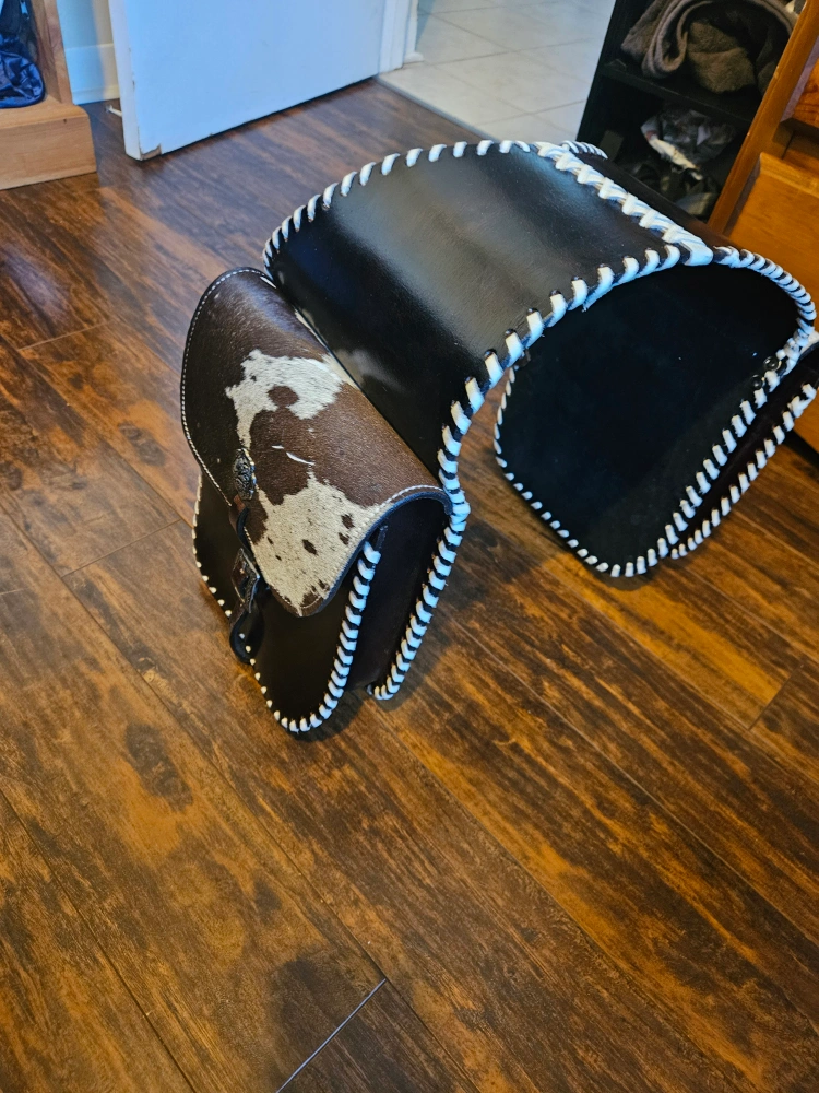 Brand New Manaal Enterprises Handmade Hair-onGenuine Cowhide Fancy Equestrian. Leather Western Trail Tack Pack Equipment Horse Saddle Bags Size: 11” L x 10” W x 4” D inches