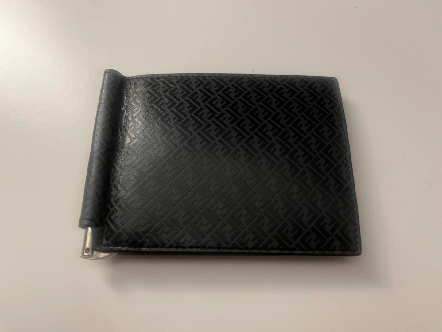 Genuine Fendi leather money clip wallet. Features a subtle embossed FF logo. Includes original Fendi box and dust bag. Multiple card slots.