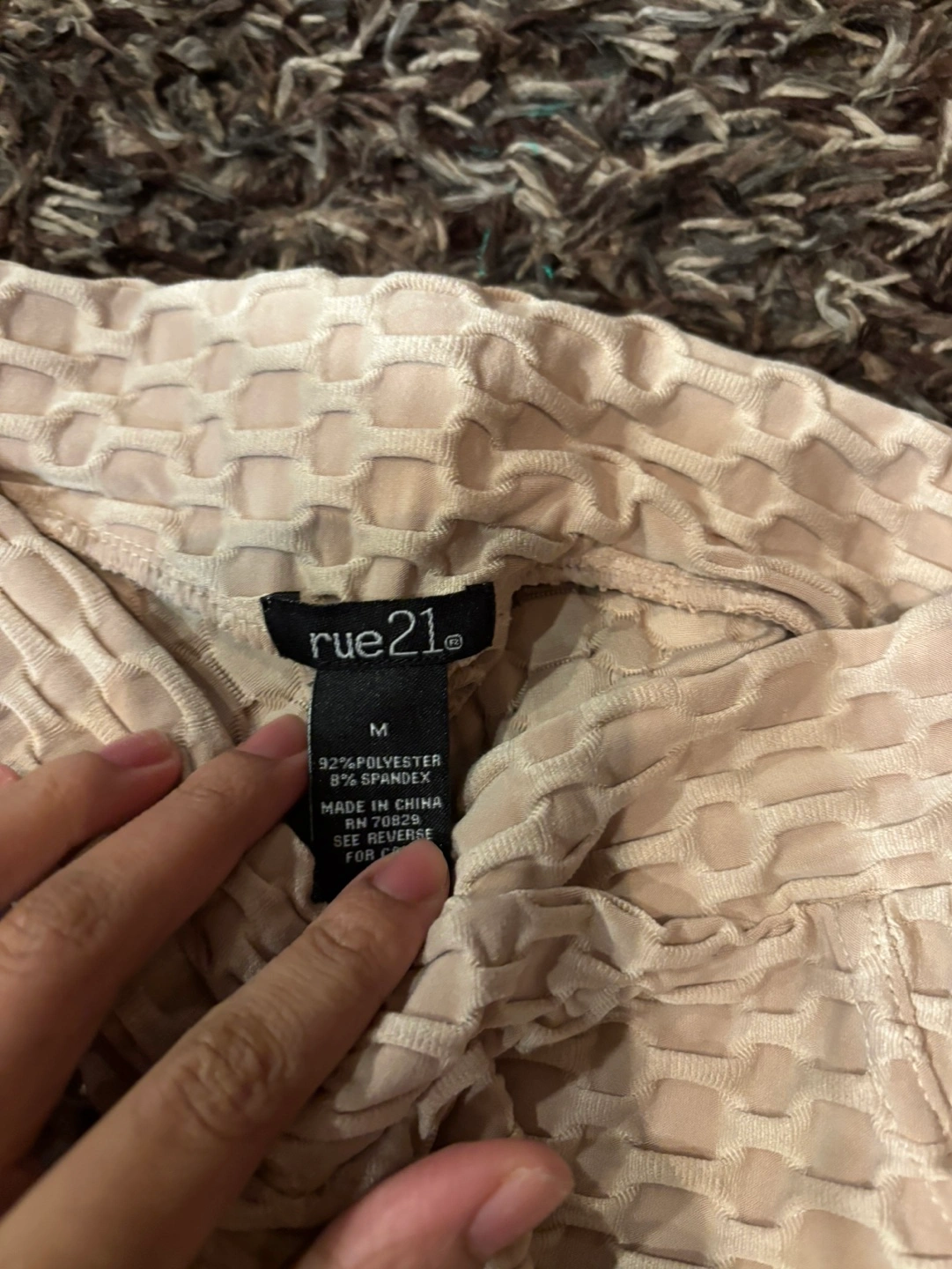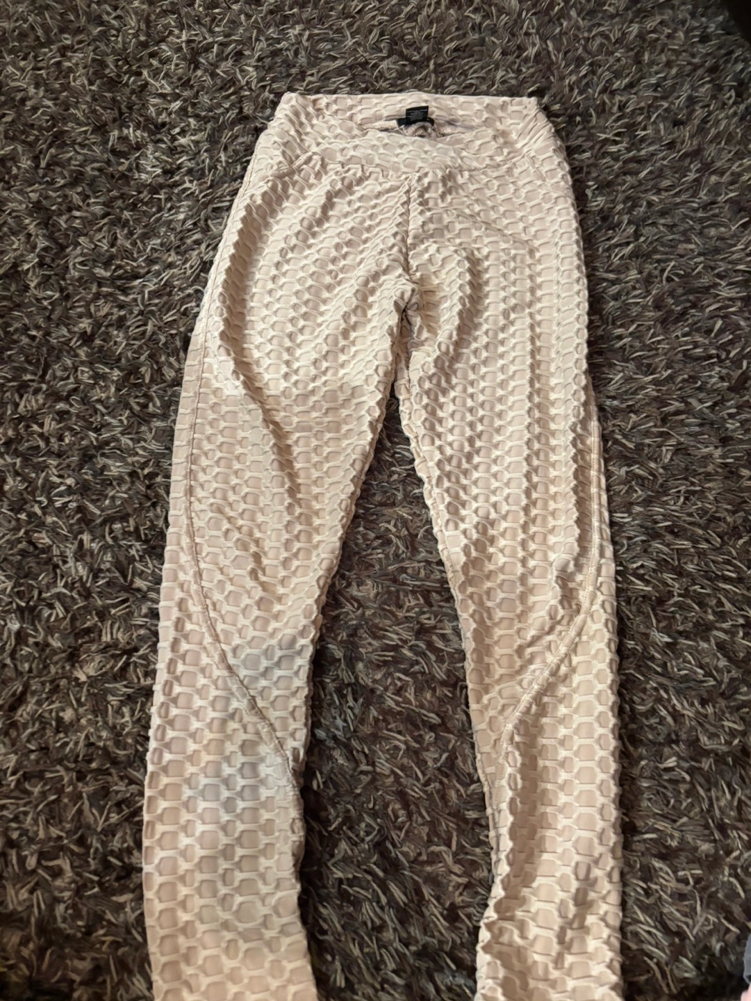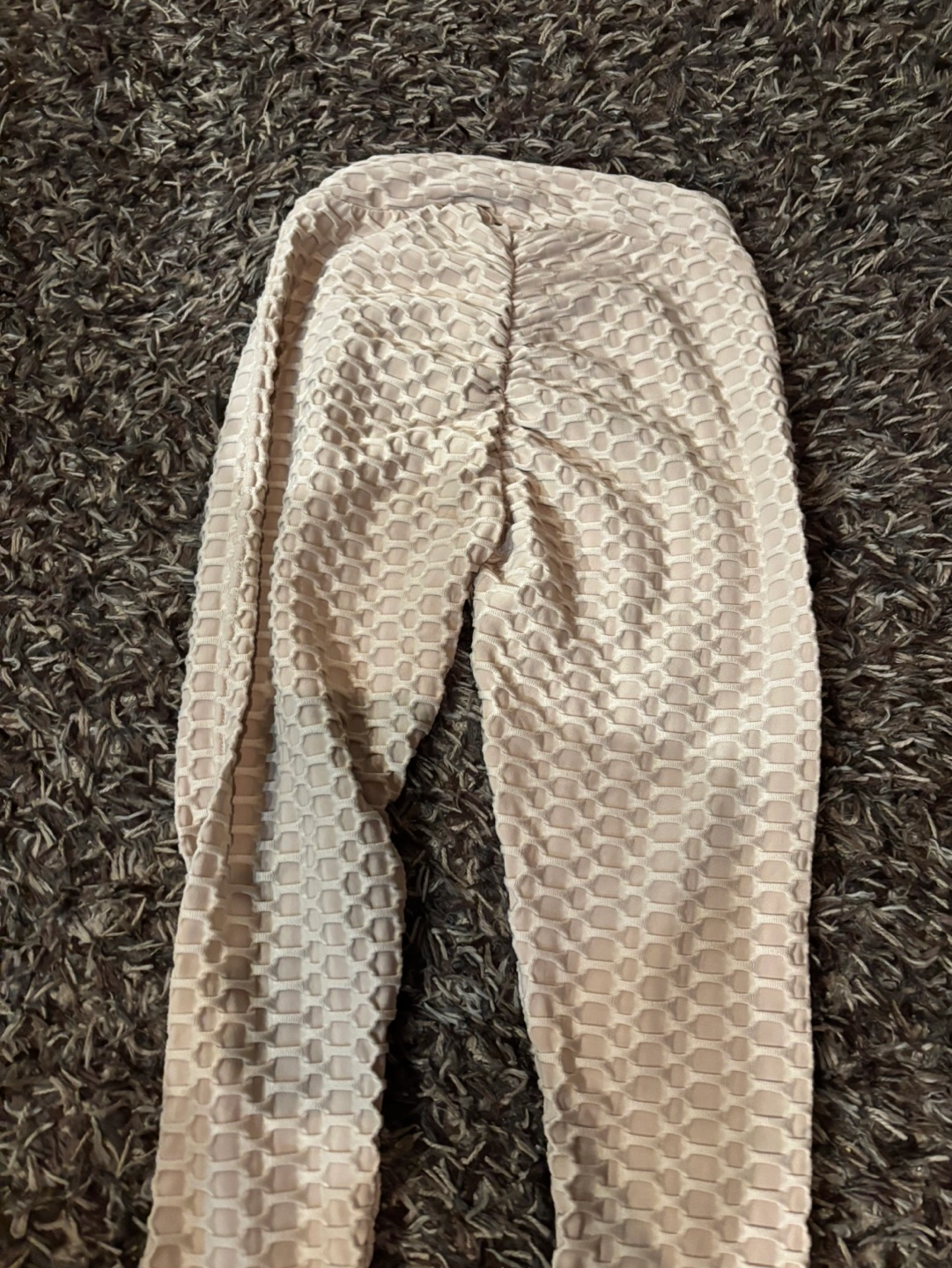 60Textured leggings. Beige colour. Size medium. 92% polyester, 8% spandex.