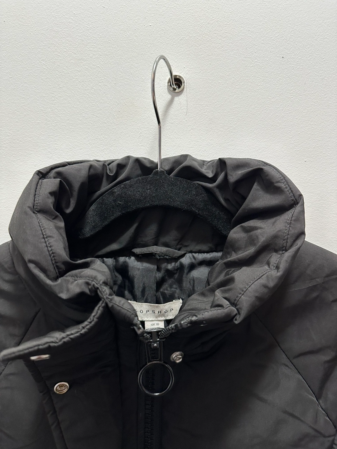 Black Topshop puffer jacket with a zipper and two pockets. Size 10 UK or 6 US (small-medium)