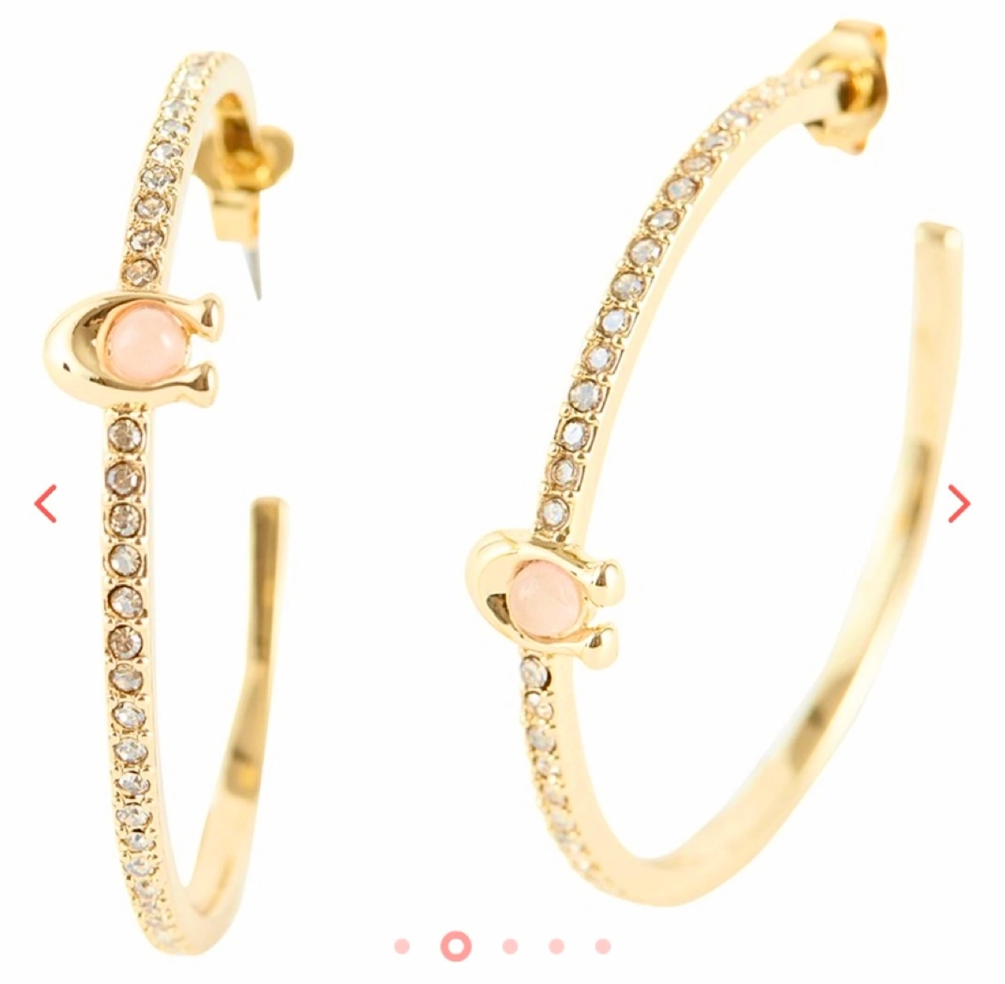 🍯🍋REG $120 COACH Rose Quartz Gold Hoop Earrings w/dust bag