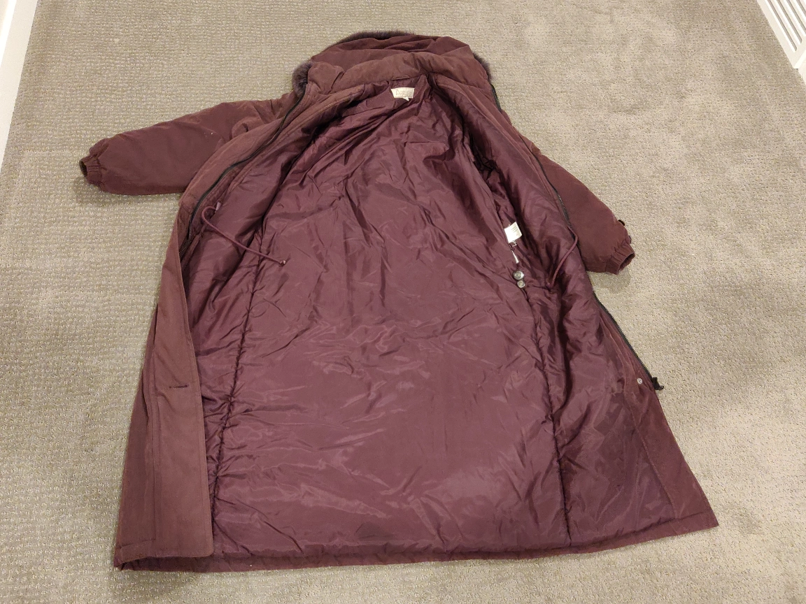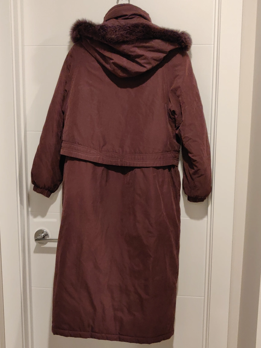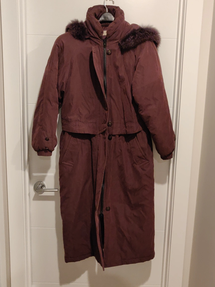 I am selling an Apropos Women Long Winter Coat Jacket in great condition. Works great as a fall / winter / spring coat. Has shoulder pads, a drawstring on the inside waist, a full-length zipper, and a removable hood.