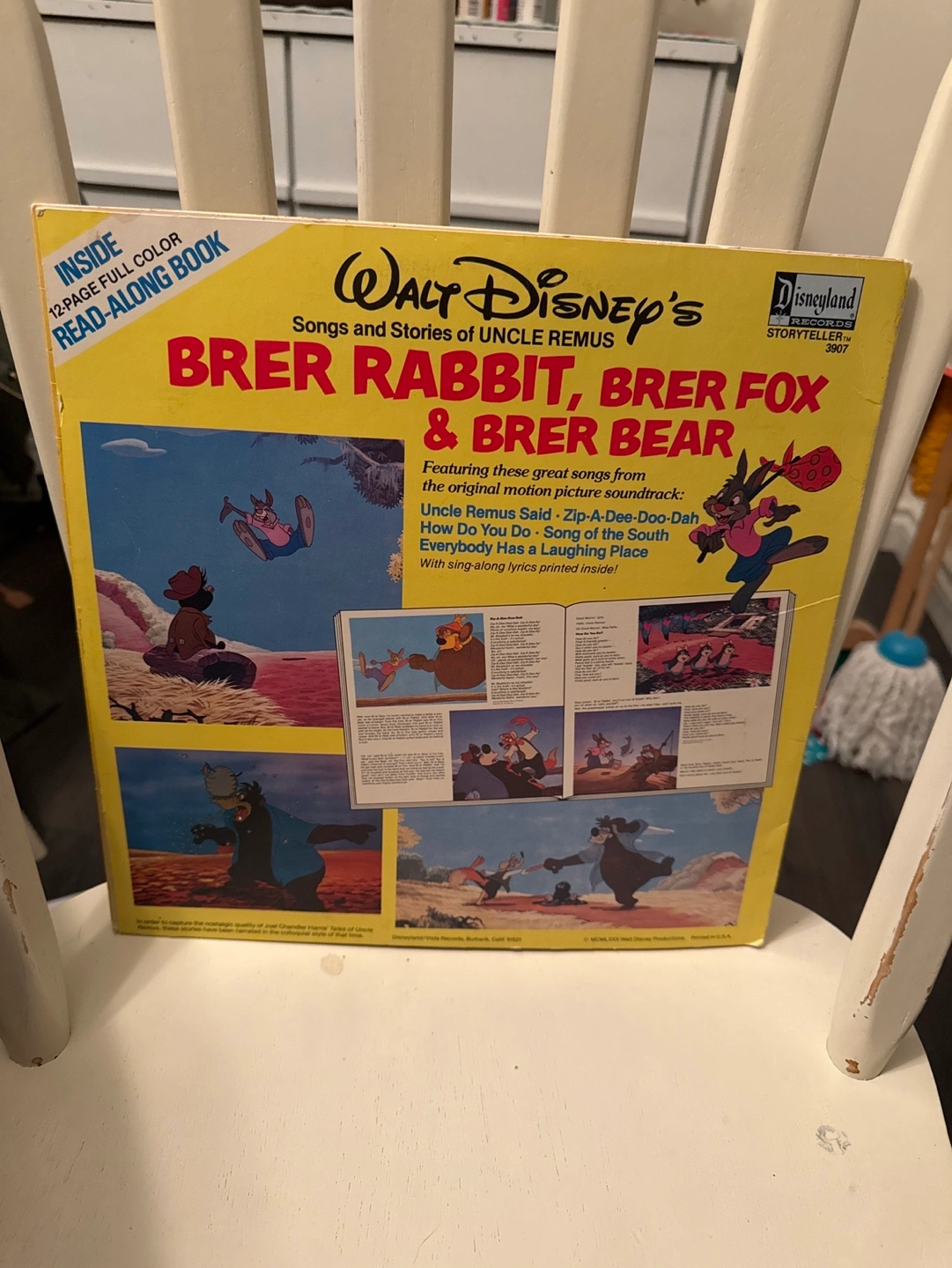 12-page full-colour read-along book. Features songs and stories of Uncle Remus. Includes songs from the original motion picture soundtrack "Song of the South". Features Zip-a-Dee-Doo-Dah. Lyrics printed inside.